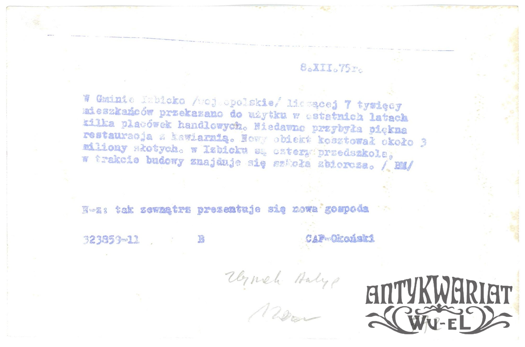 IZBICKO (pow. strzelecki). Nowa gospoda "Izbiczanka"; fot. CAF - Okońśki, 8.12.1975 r.; stn bardzo dobry, wymiary: 18,1 x 11,8 cm.