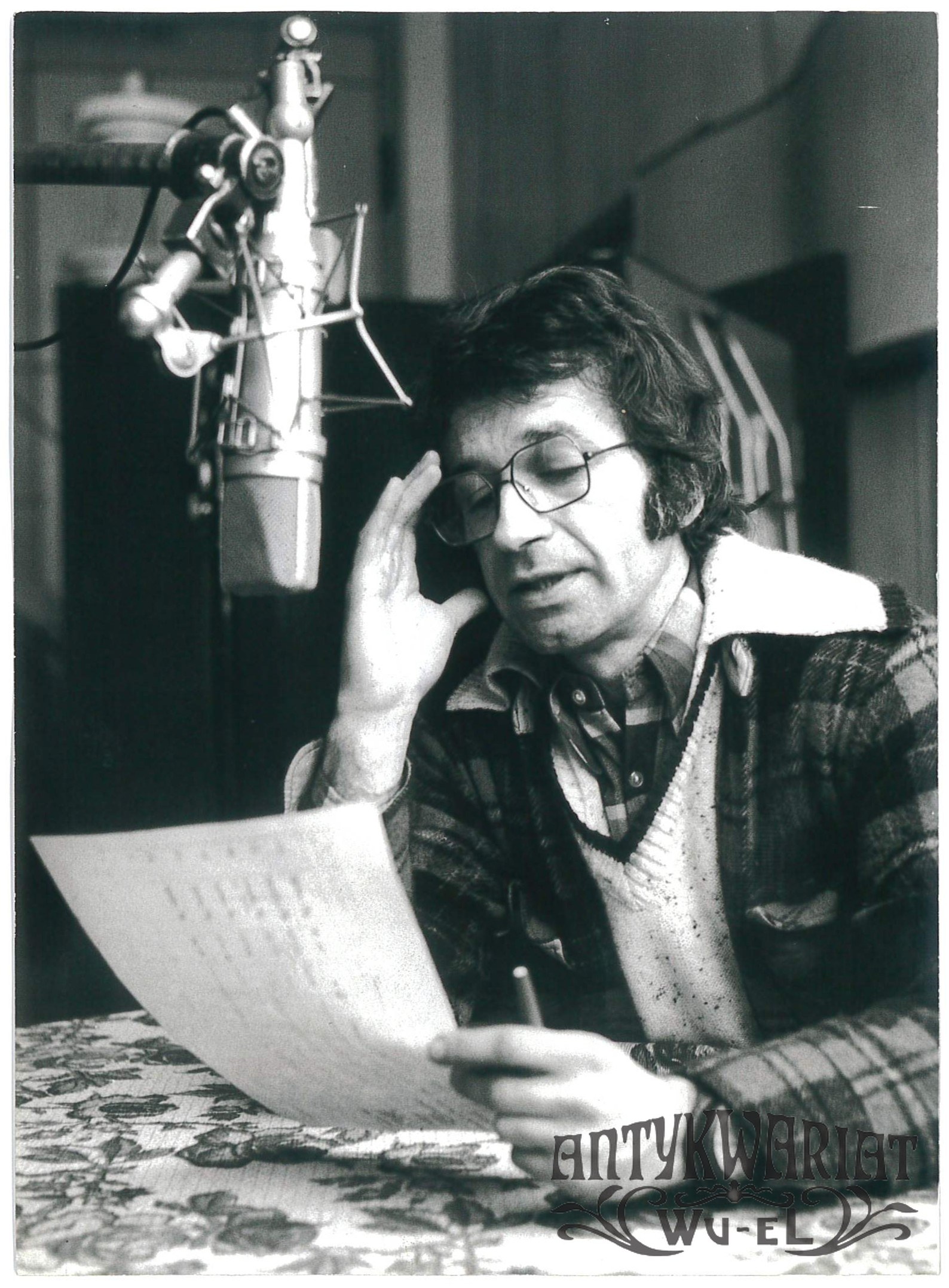 JACEK FEDOROWICZ. W trakcie nagrywania audycji "60 minut na godzinę"; fot. CAF - Rosiak,11.12.1979 r.; stan bardzo dobry, wymiary: 13,1 x 17,9 cm