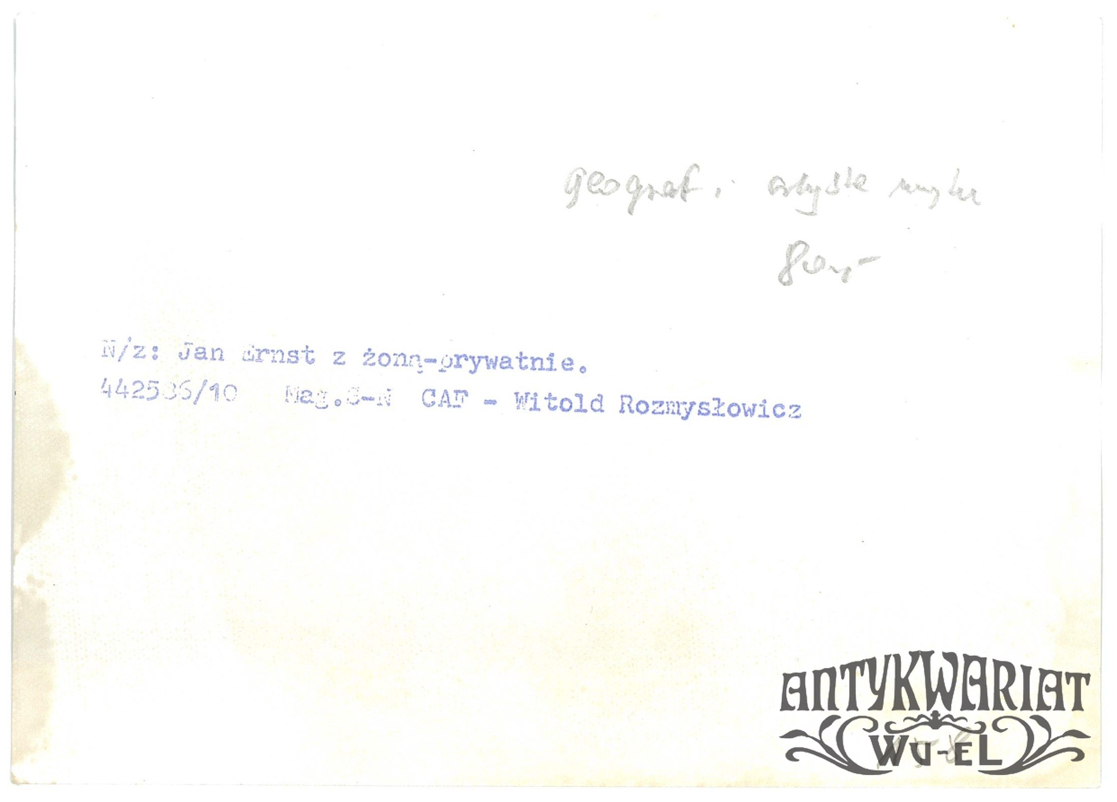 JAN ERNST, geograf, artysta muzyk, z żoną; fot. Witold Rozmysłowicz; stan bardzo dobry minus, wymiary: 18,2 x 12,9 cm.