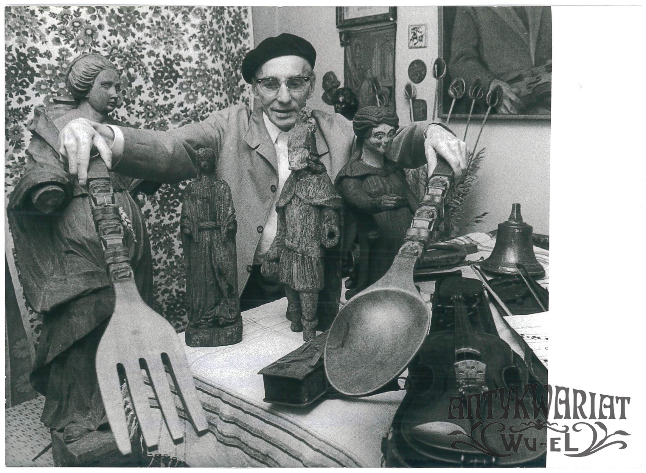 JAN LUBOMIRSKI. Kolekcjoner sztuli ludowej Warmii; fot. CAF - Moroz; stan bardzo dobry, wymiay: 18,2 x 13,1 cm.
