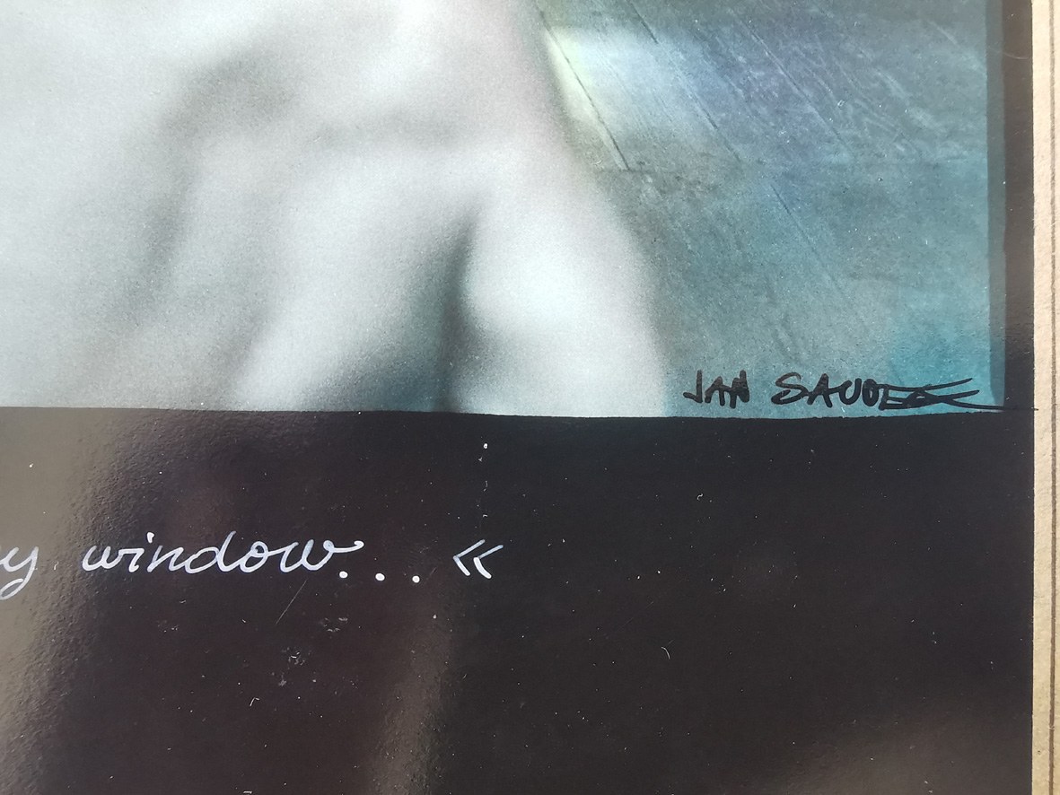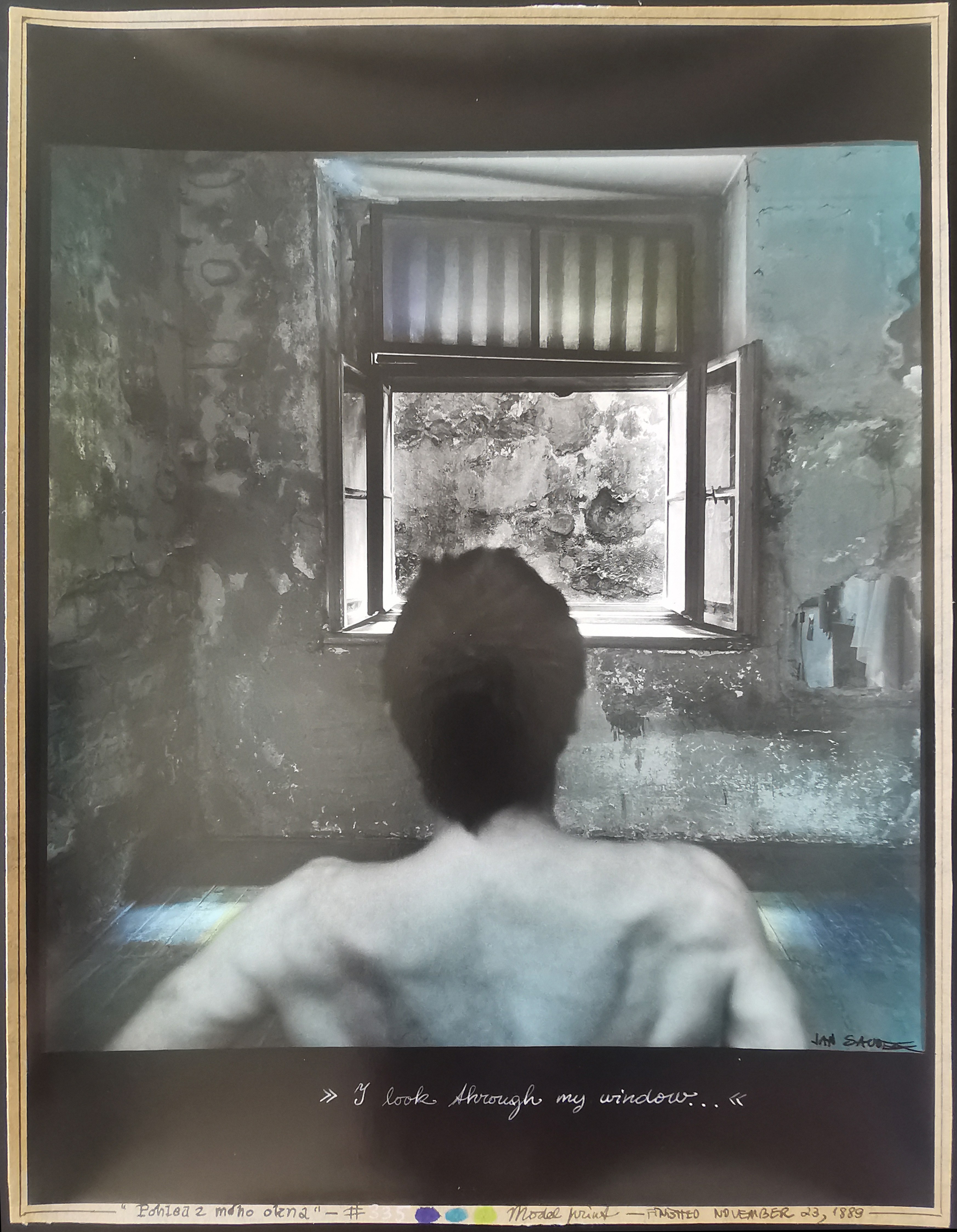 sygn. p.d.: JAN SAUDEK; u dołu ręcznie: I look throug my window