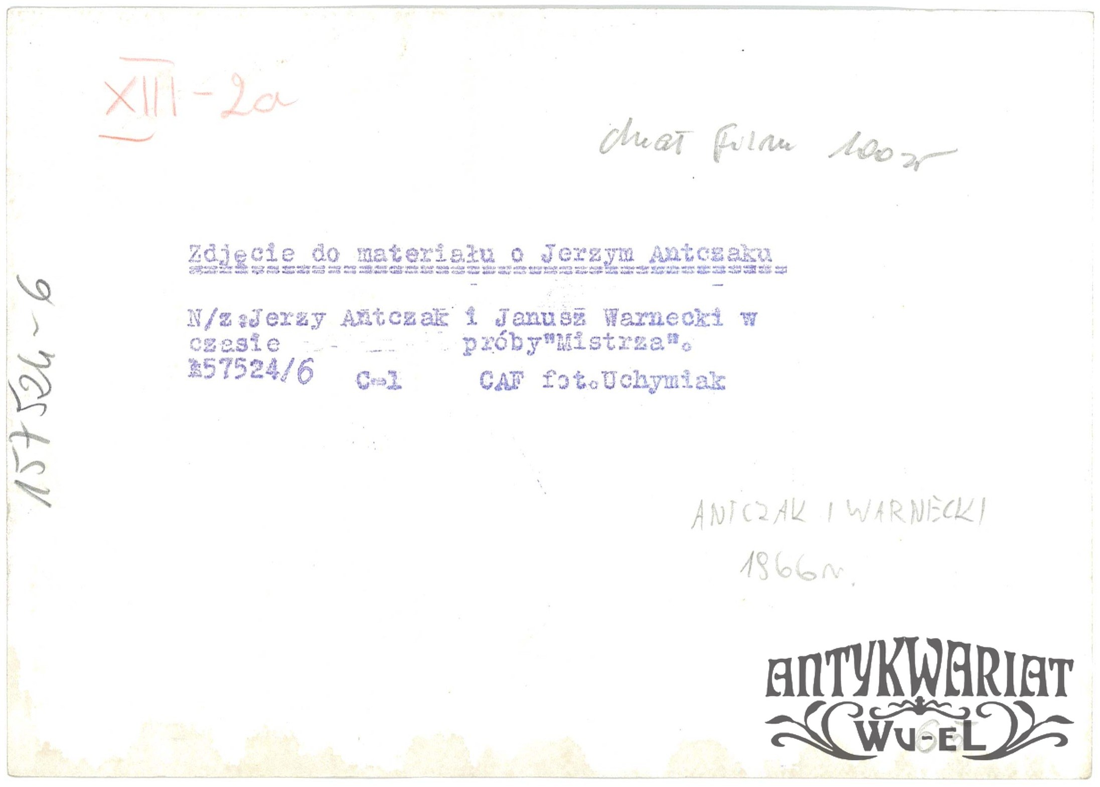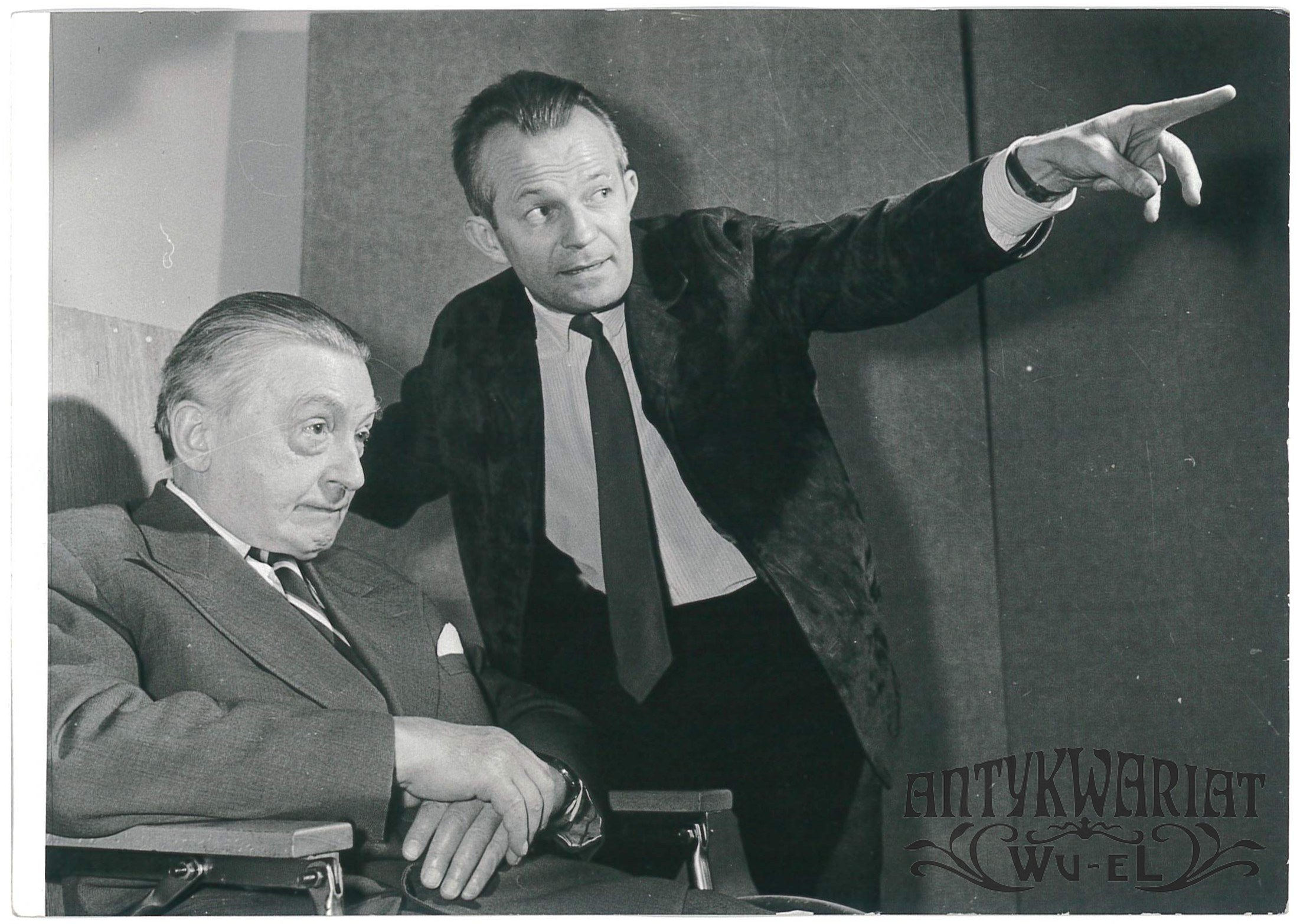 JERZY ANTCZAK i JANUSZ WARNECKI w trakcie próby spektaklu "Mistrz"; fot. CAF - Uchymiak, 1966 r.; stan bardzo dobry, wymiary: 18,3 x 13 cm