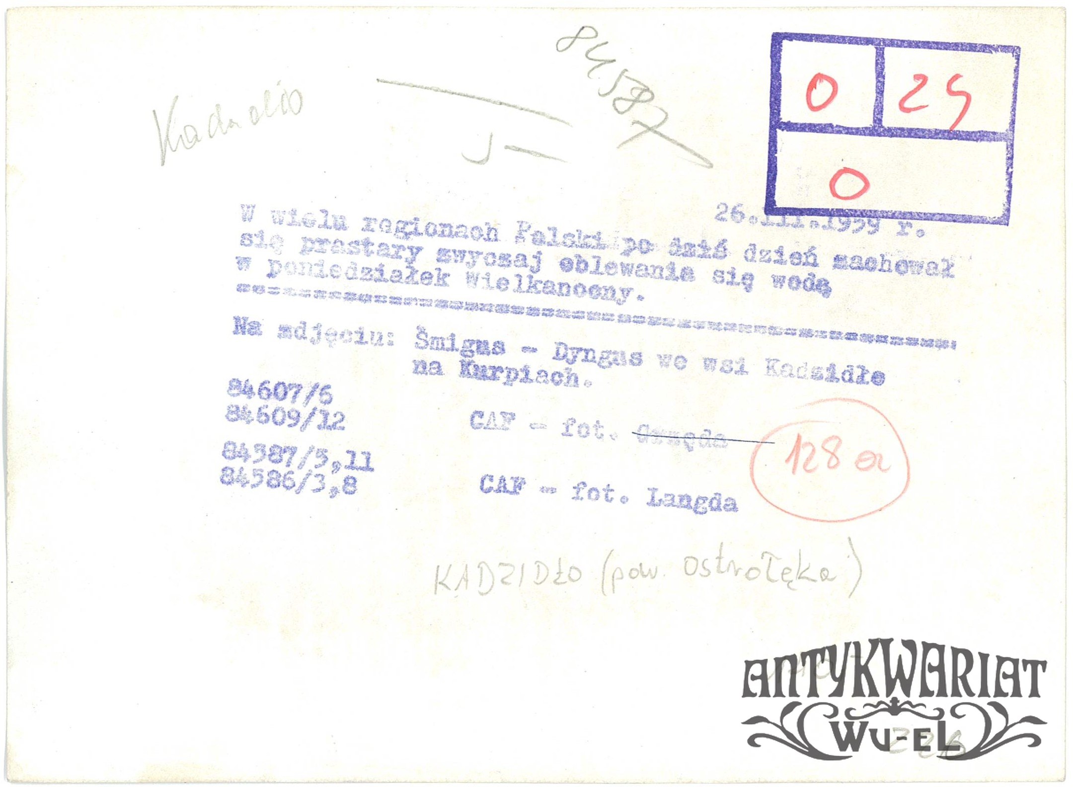 KADZIDŁO (pow. Ostrołęka). Tradycyjny kurpiowski śmigus-dyngus; fot. CAF - Langda, 26.03.1959 r.; stan bardzo dobry minus, wymiary: 18 x 13,2 cm.