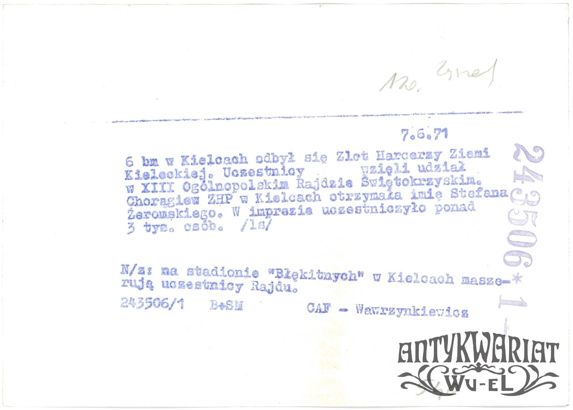 KIELCE. Zlot Harcerzy Ziemi Kieleckiej, XIII Ogólnopolski Rajd Świetokrzyski; fot. CAF - Wawrzynkiewicz, 6.06.1971 r.; stan bardzo dobry, wymiary: 18,2 x 12,9 cm.