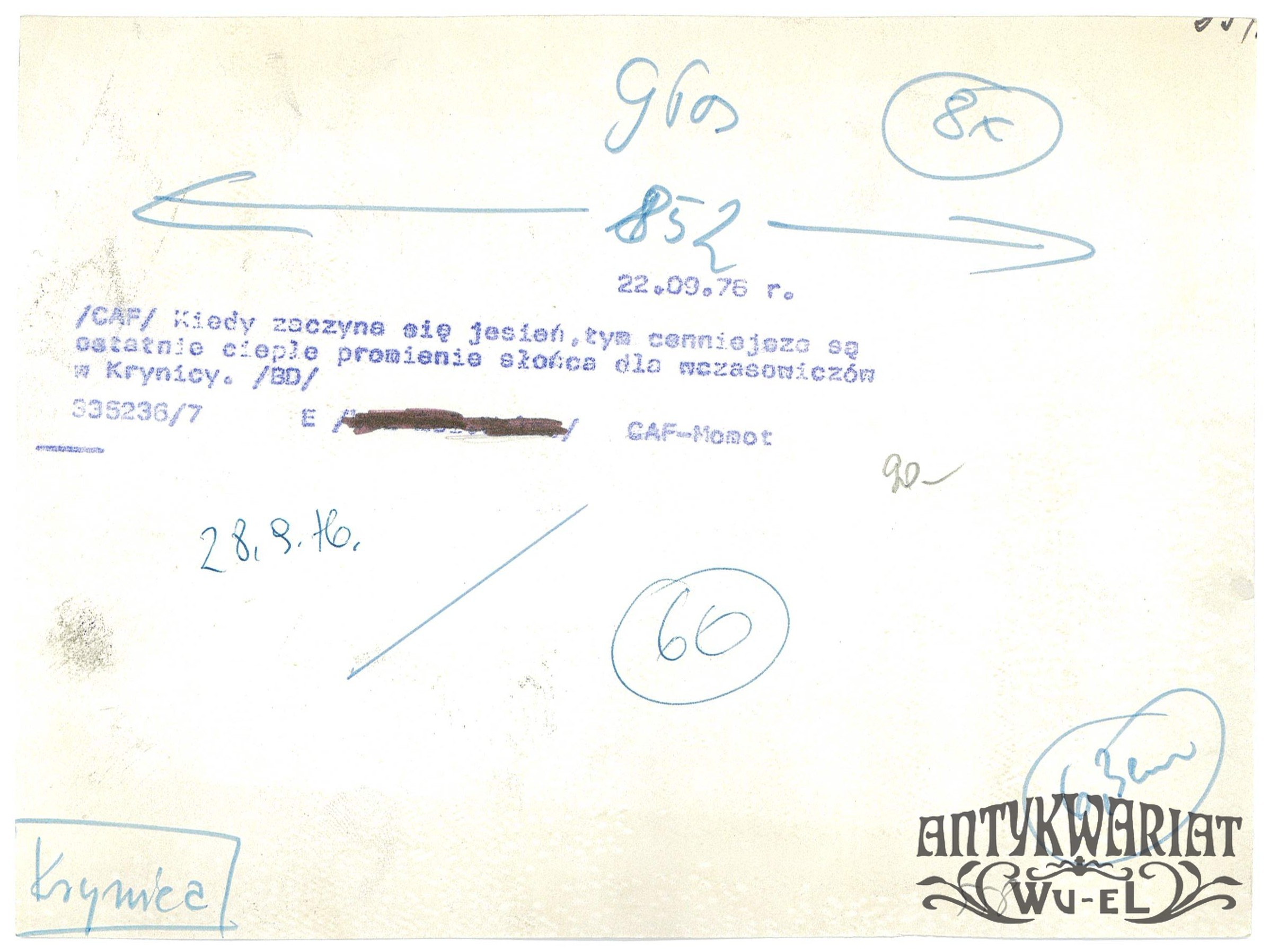 KRYNICA (pow. Nowy Sącz). Wczasowicze w jesiennym słońcu; fot. CAF - Momot, 22.09.1976 r.; stan bardzo dobry, wymiary: 19.7 x 14,7 cm.