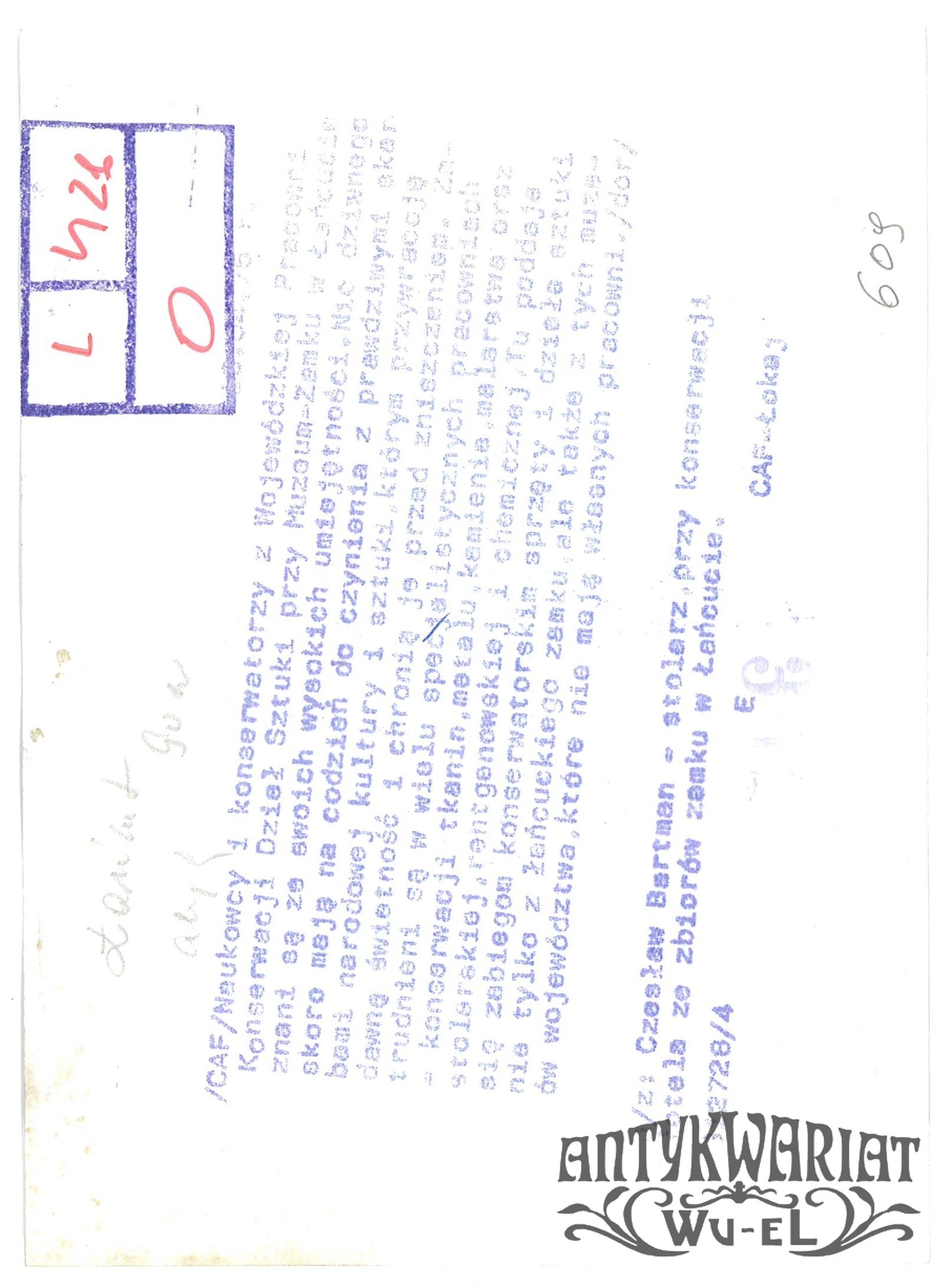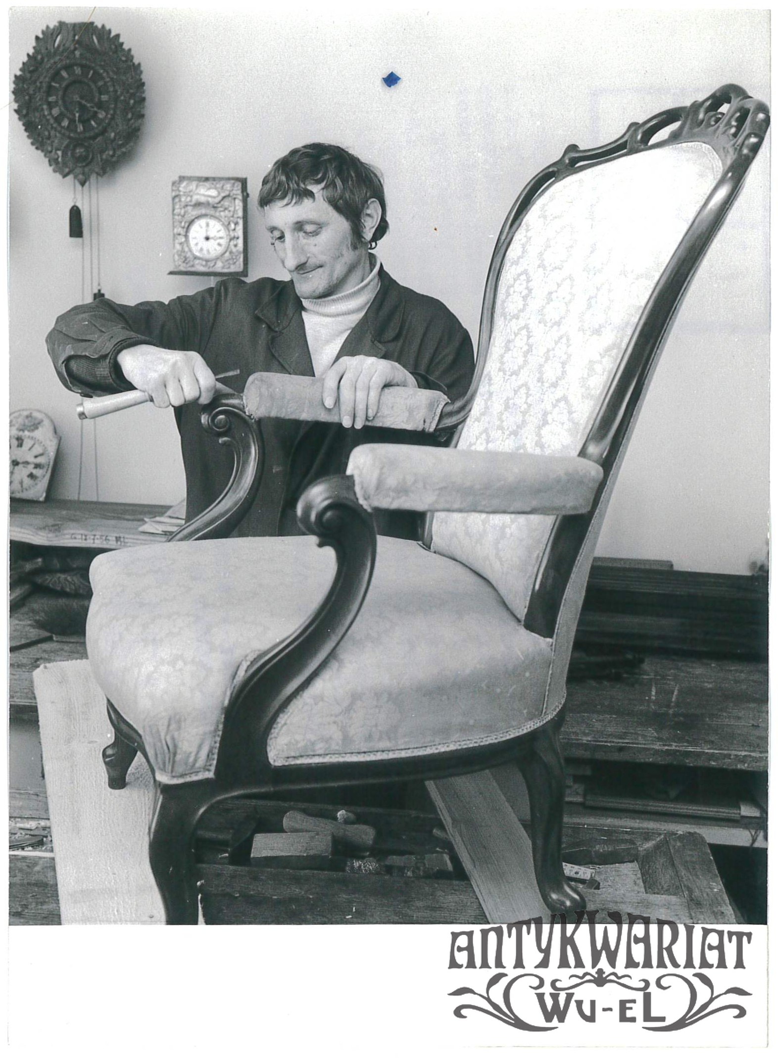 ŁAŃCUT. Konserwacja fotela ze zbiorów zamku w Łańcucie; fot. CAF - Łokaj, 18.04.1975 r.; stan bardzo dobry minus, wymiary: 13 x 17,7 cm.