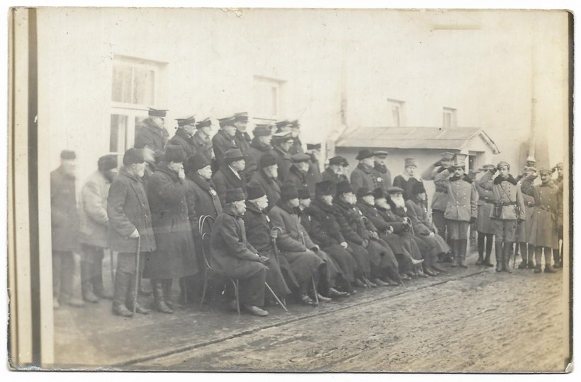 [LEGIONY Polskie - rtm. Władysław Belina-Prażmowski z wizytą u powstańców styczniowych w Lublinie - fotografia sytuacyjna]. [23 X 1916]. Fotografia form. 8,8x13,8 cm, nieznanego autorstwa.