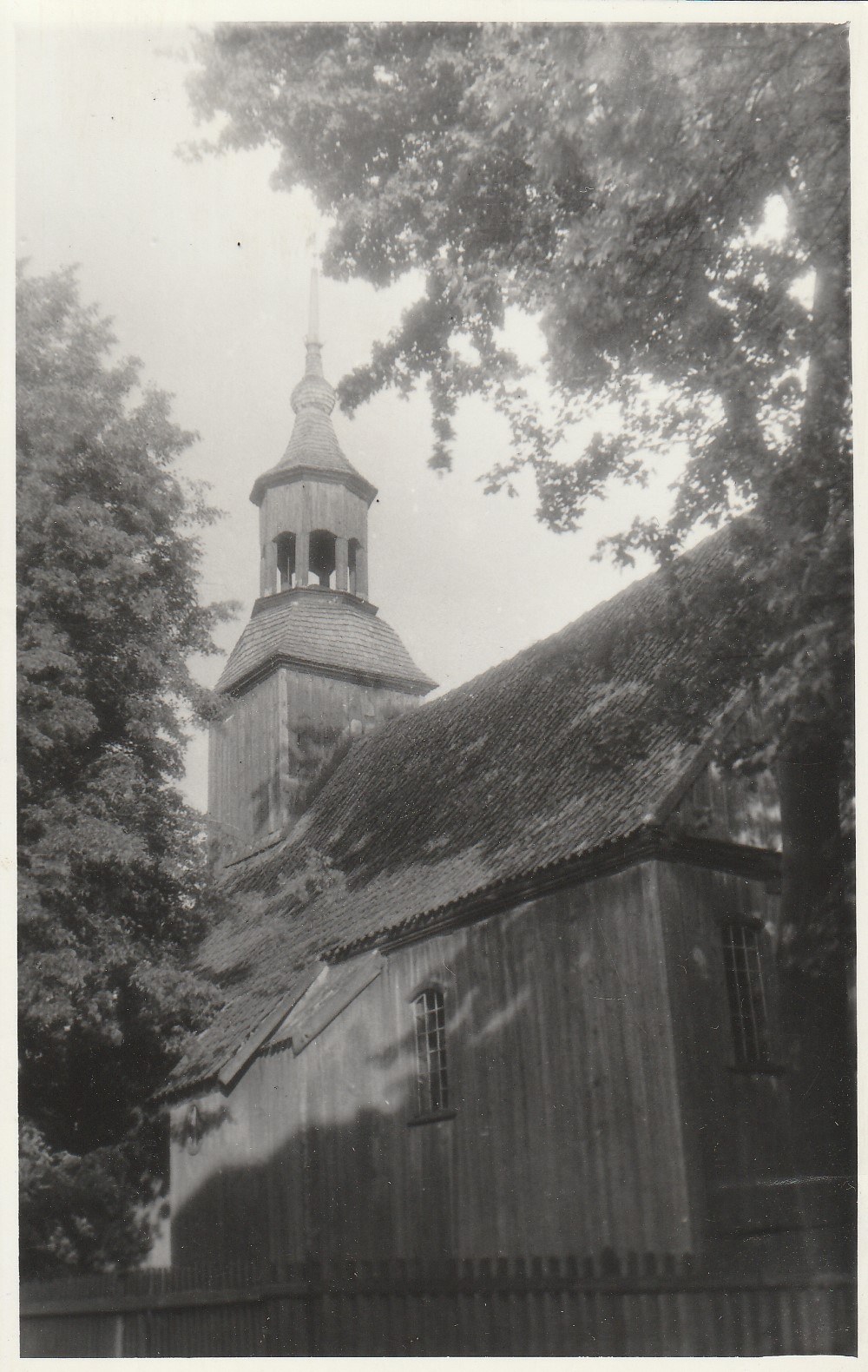 LUBAWA (pow. iławski). Kościół św. Barbary; fot. niesygnowana, po 1945; na verso opis maszynowy; fot. cz.-b., st. bdb., ślad po spinaczu; wym.: 87x135 mm;