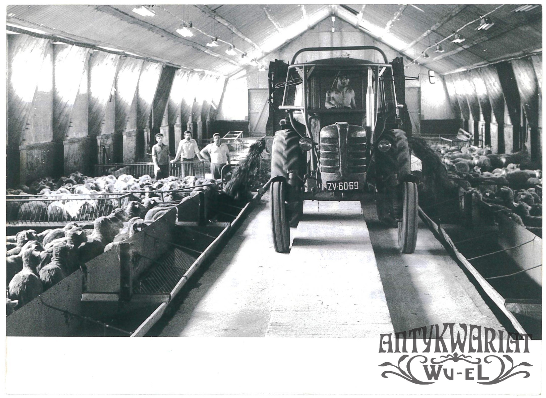 LUBNIEWICE (pow. Sulęcin), PGR, przemysłowa ferma owiec, wydawanie karmy dla owiec; fot. Undro, 6.07.1976 r.; stan bardzo dobry, wymiary: 18 x 13,1 cm.