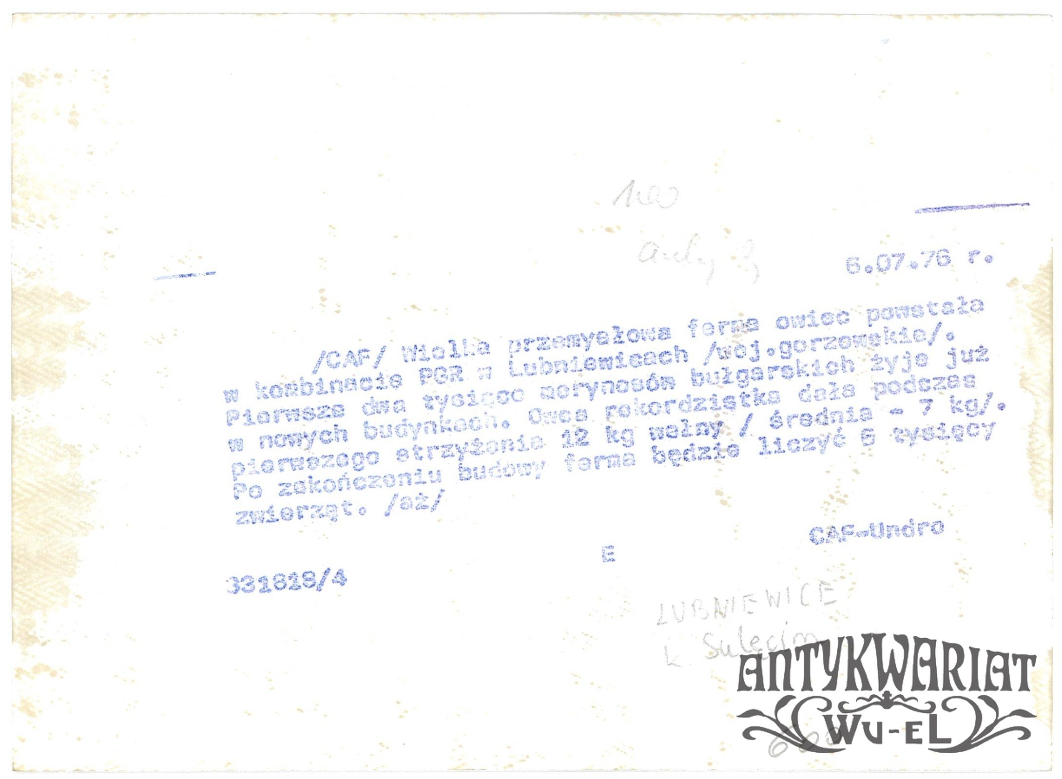 LUBNIEWICE (pow. Sulęcin), PGR - przemysłowa ferma owiec, fot. UNDRO, 1976