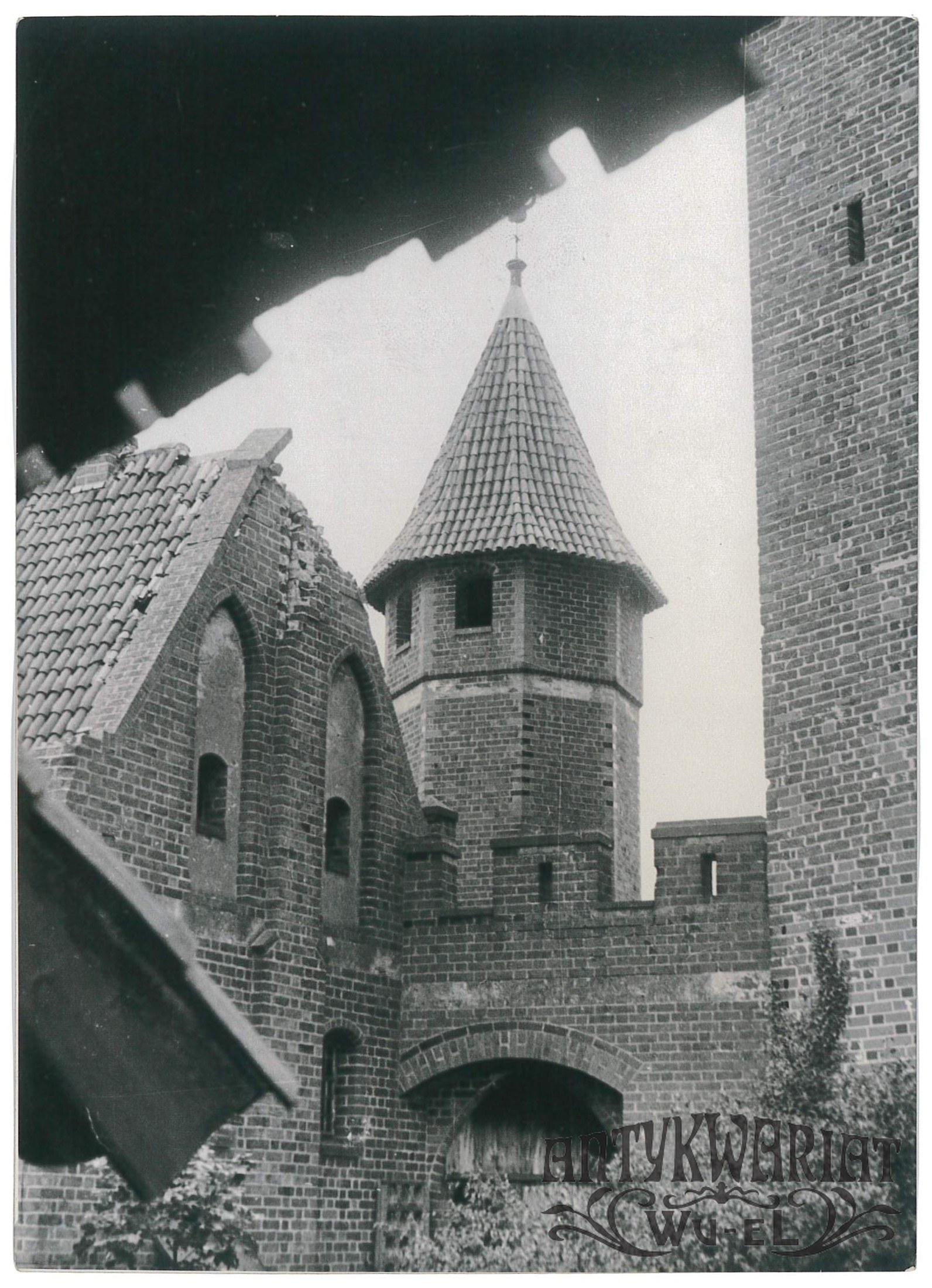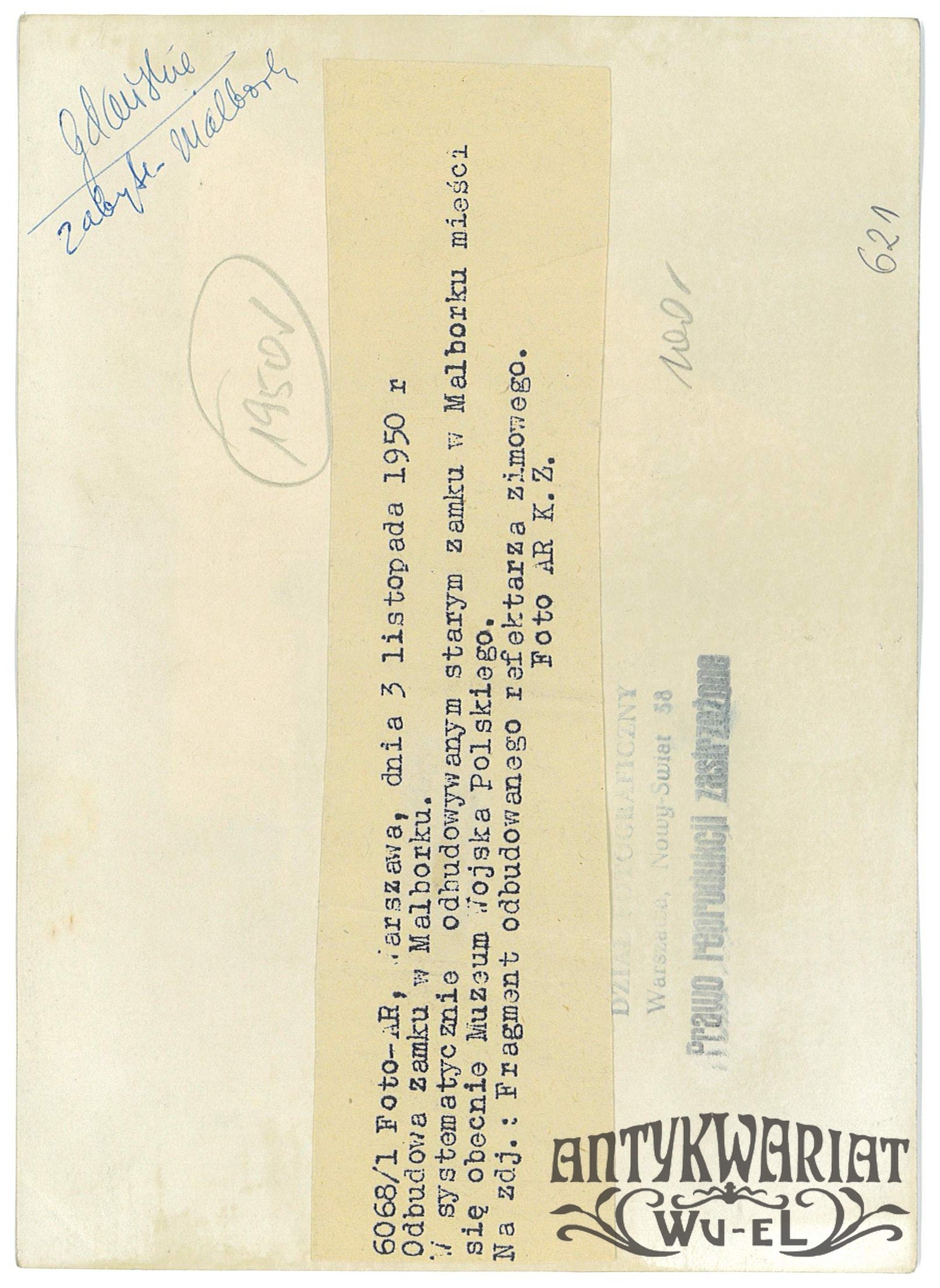 MALBORK. Fragment odbudowanego refektarza zimowego, widok z zewnątrz; foto AR K. Z., 3.11.1950 r.; stan bardzo dzobry, wymiary: 13,1 x 18,1 cm.