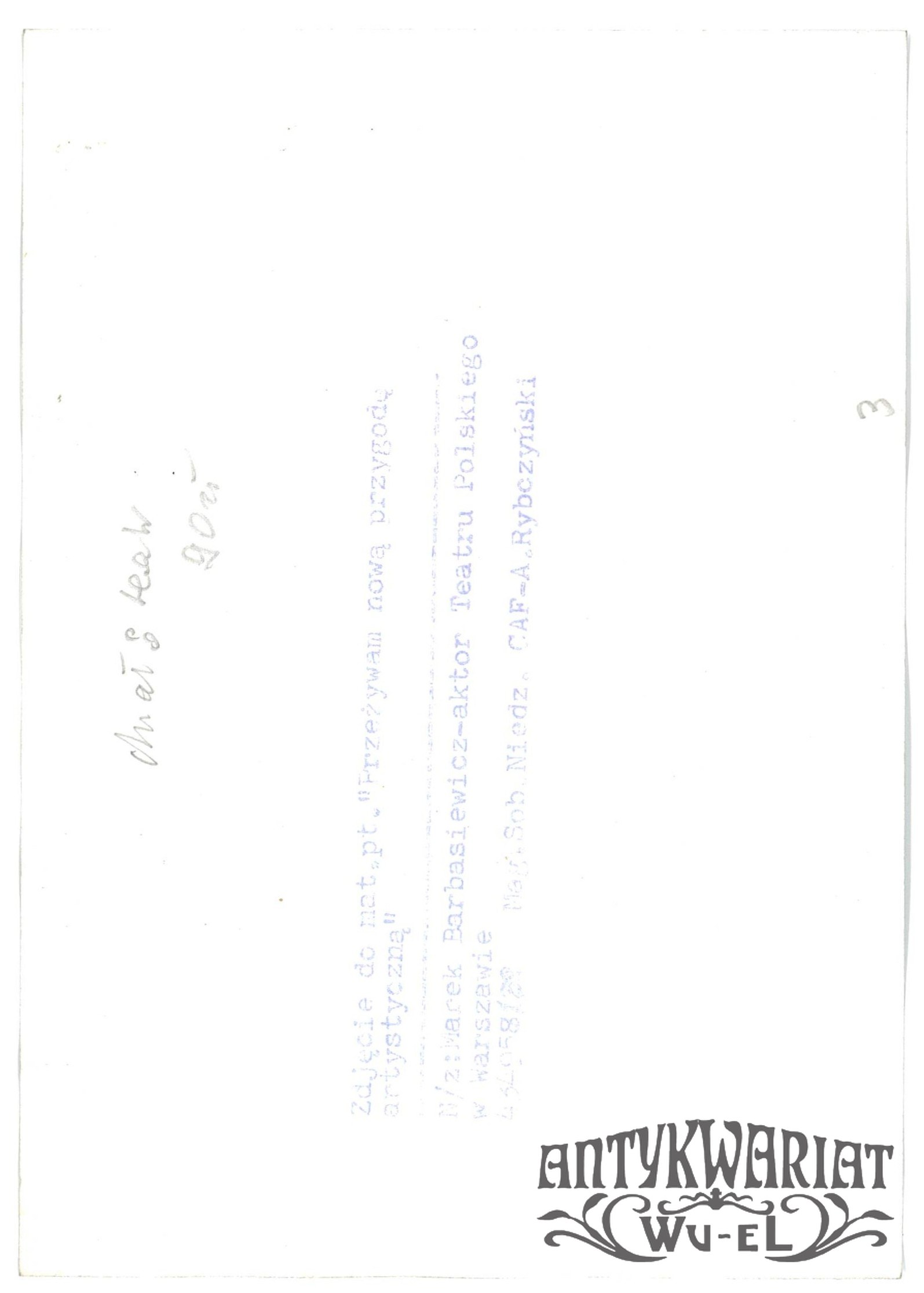 MAREK BARBASIEWICZ, aktor Teatru Polskiego w Warszawie. Fot. CAF - Andrzej Rybczyński, lata 80.; stan bardzo dobry, wymiary: 12,9 x 18,2 cm