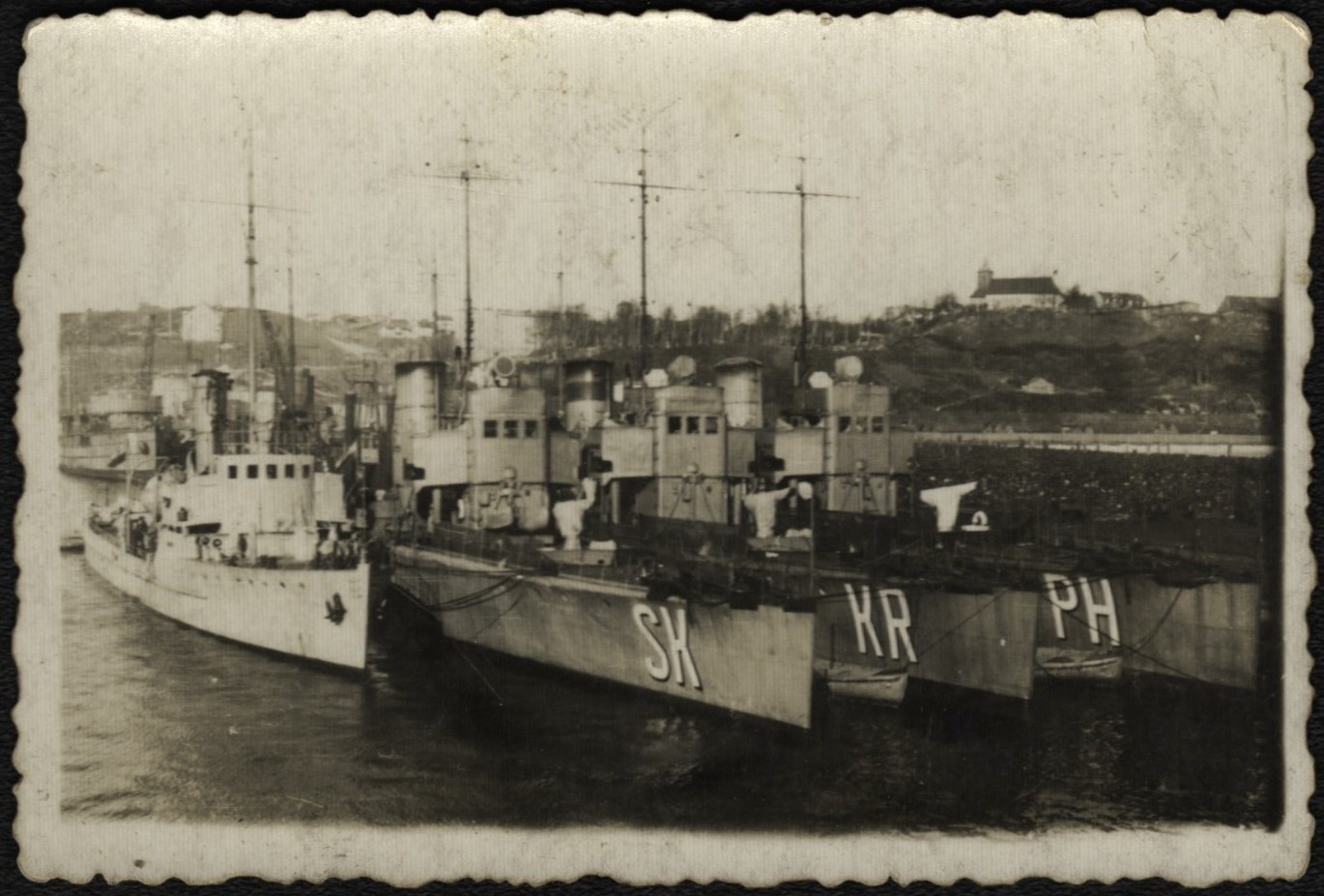 MARYNARKA WOJENNA, Port wojenny w Gdyni] Fotografia 3 polskich torpedowców. ORP Krakowiak, ORP Podhalanin, ORP Ślązak. Gdynia, 23 V 1935