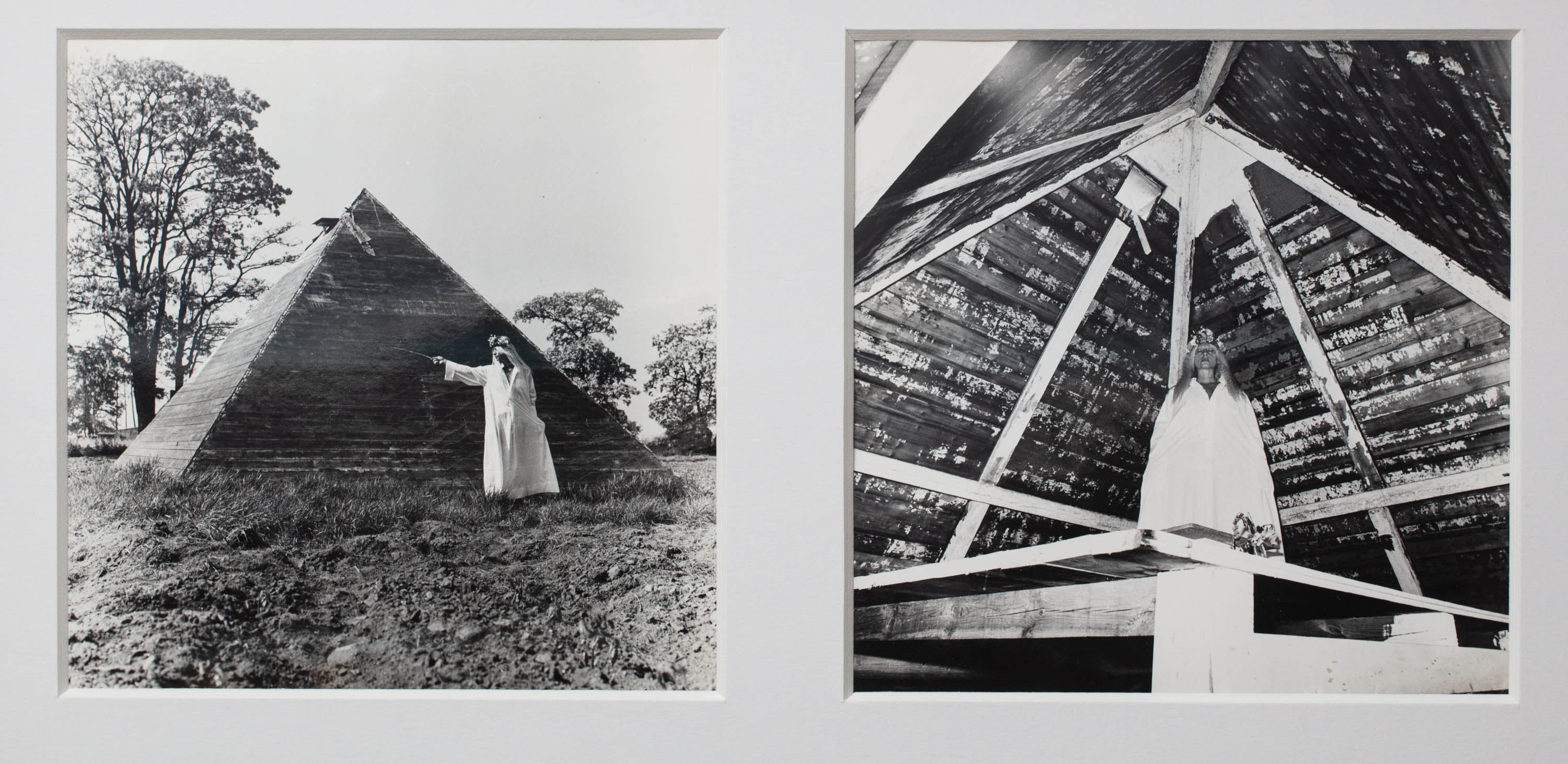 fotografia czarno-biała, 17 x 17 cm (x 2), vintage, na odwrocie każdej opis: 'NATALIA LL | Seance: "PYRAMID"| Wrocław, June 2, 1979'