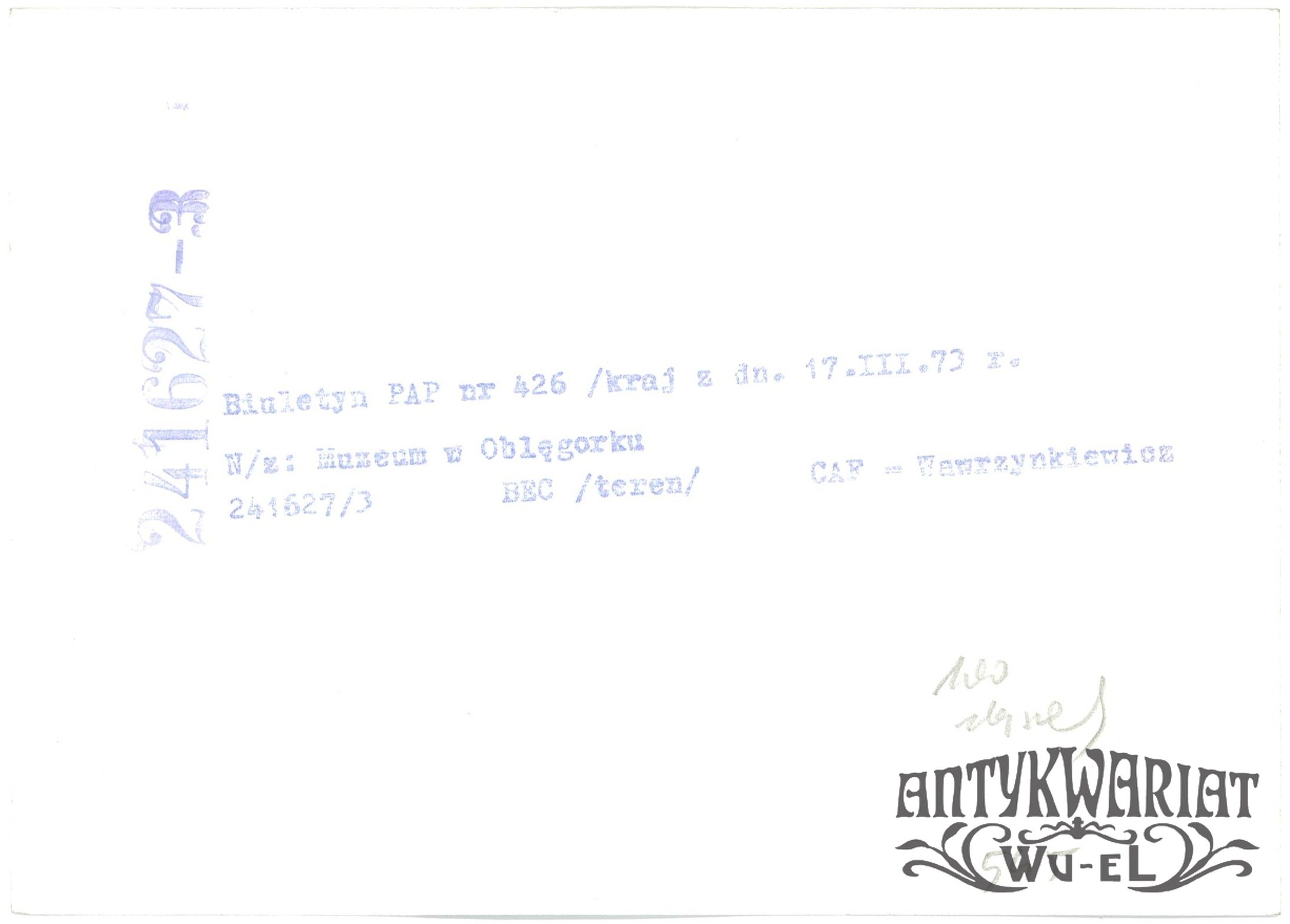 OBLĘGOREK (pow. Kielce). Posiadłość noblisty Henryka Sienkiewicza, od 1958 r. w pałącu mieści się muzeum, oddział Muzeum Narodowego w Kielcach; fot. CAF - Wawrzynkiewicz, 17.03.1973 r.; stan bardzo dobry, wymiary: 18,2 x 13 cm.