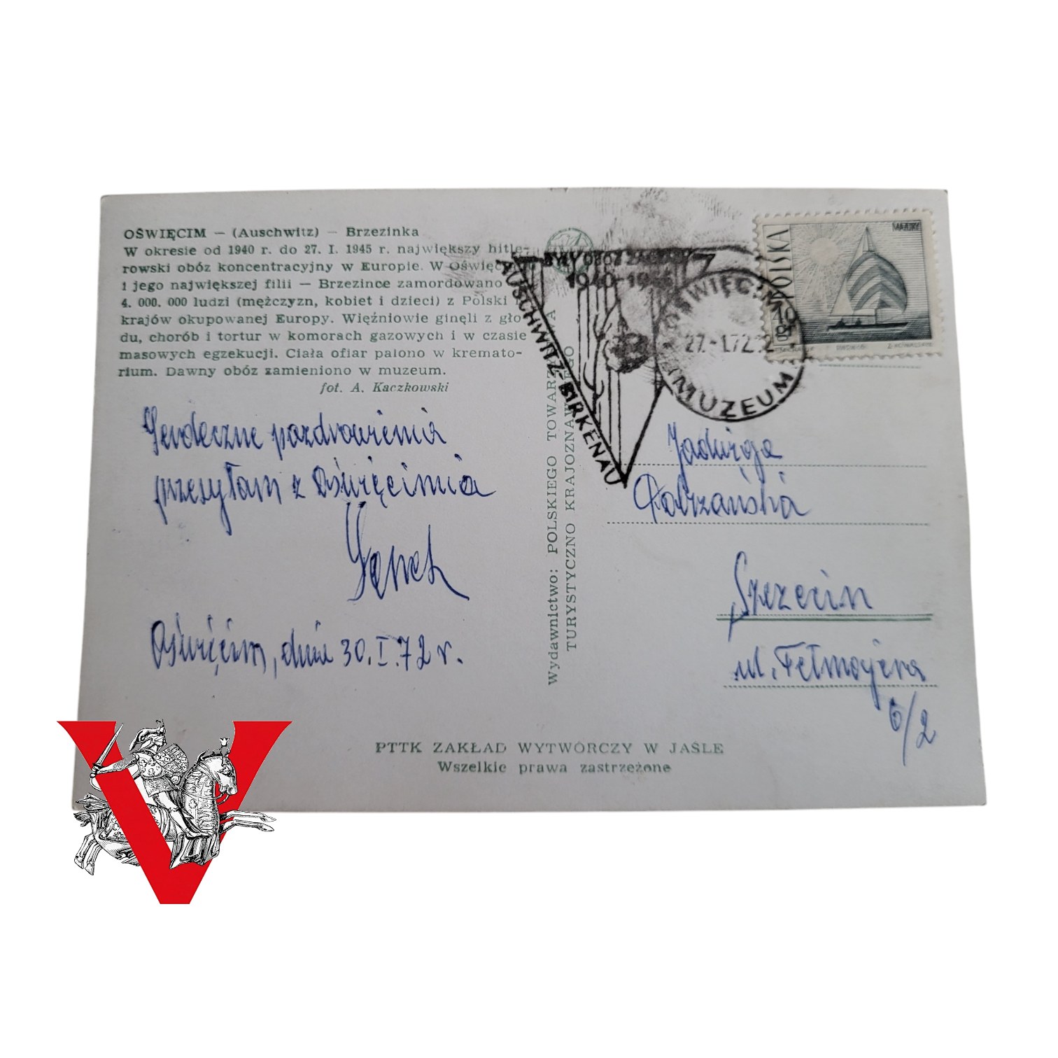 Kartka Pocztowa wysłana przez Eugeniusza Dobrzańskiego, kuzyna słynnego Hubala, żołnierza AK i więźnia Obozów Koncentracyjnych. Adresatem jest jego żona również więźniarka.