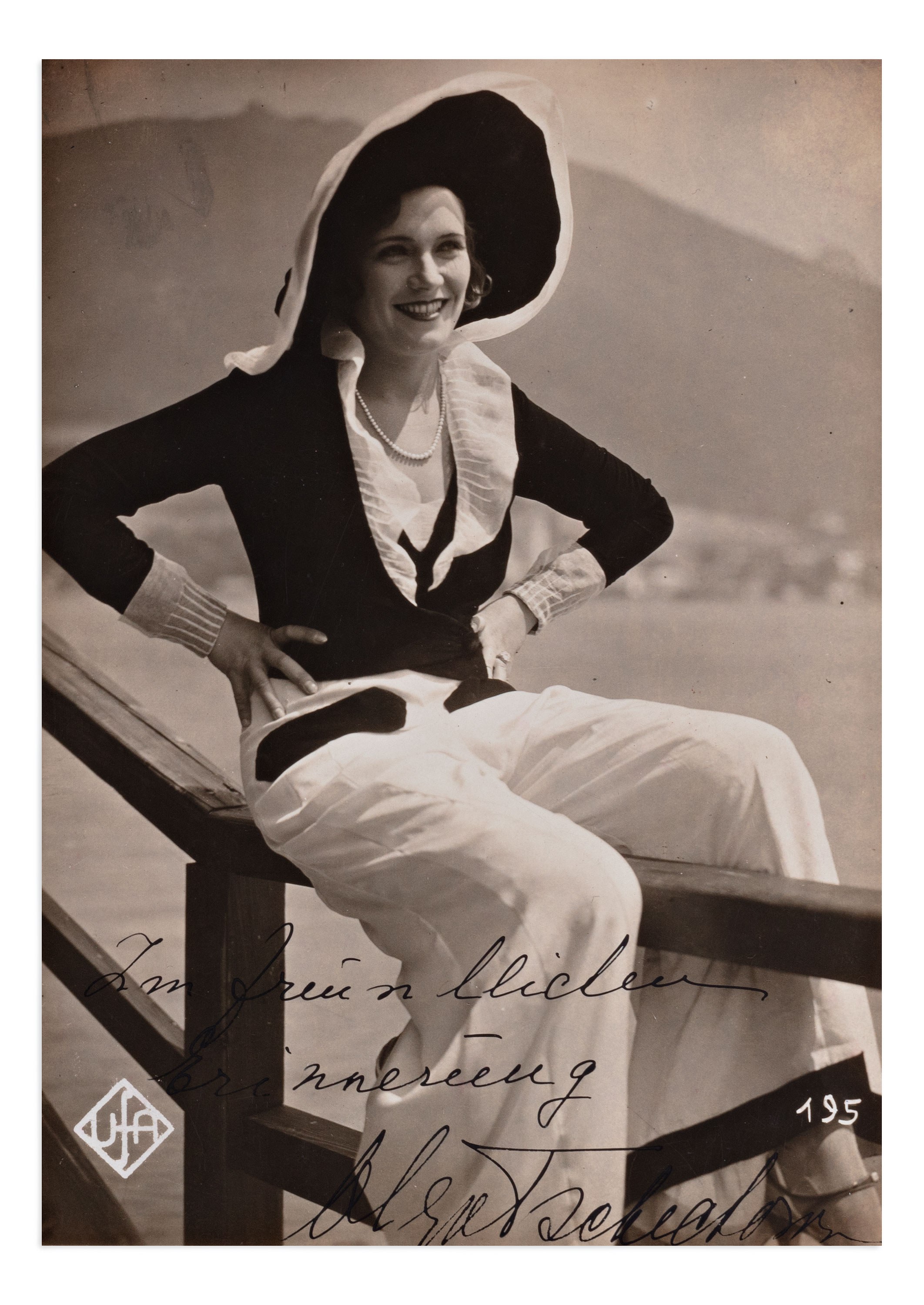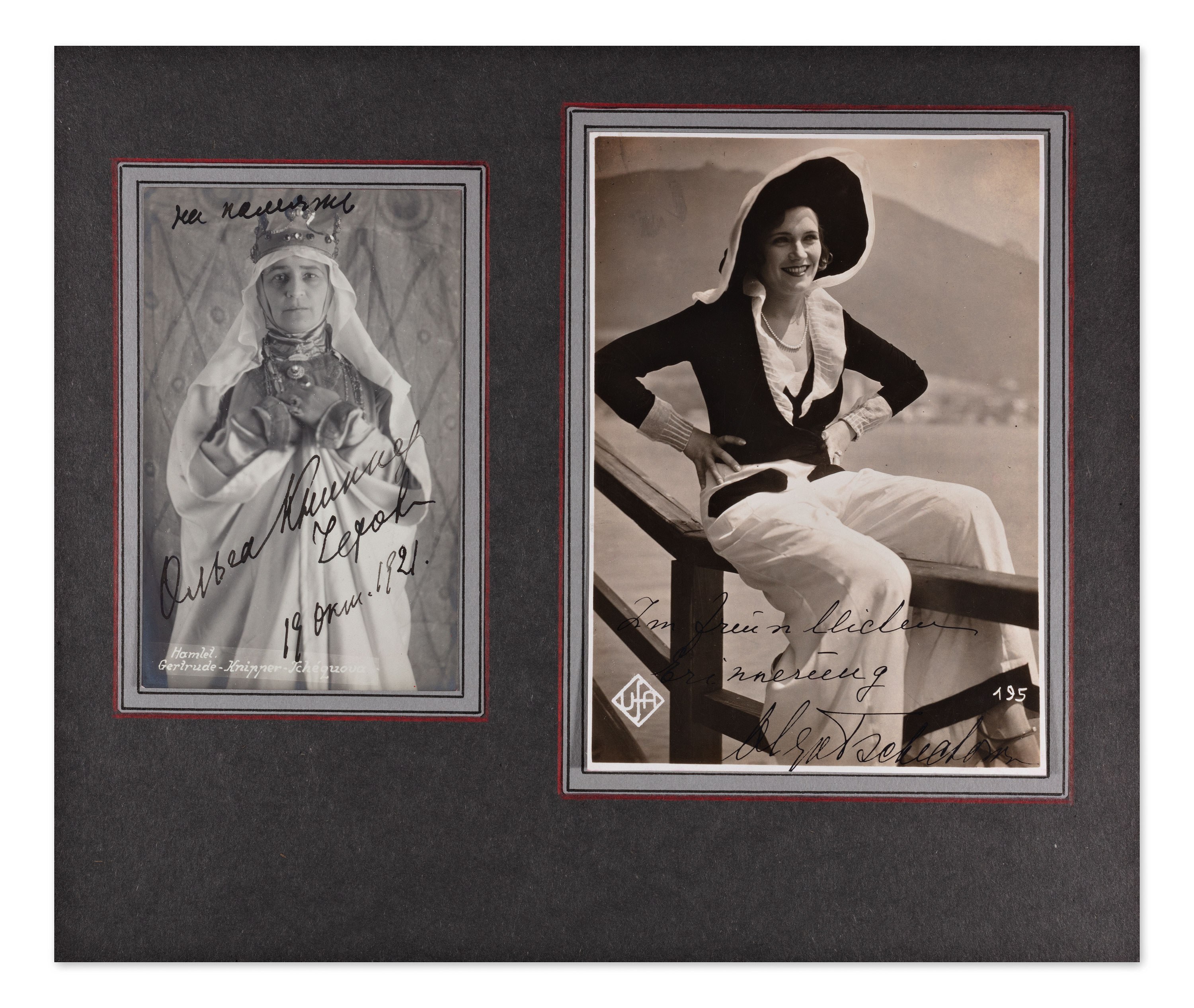Two signed period photographs of Russian actress Olga Knipper-Chekhova, renowned as a member of the Moscow Art Theatre and the wife of playwright Anton Pavlovich Chekhov.Left photograph:
