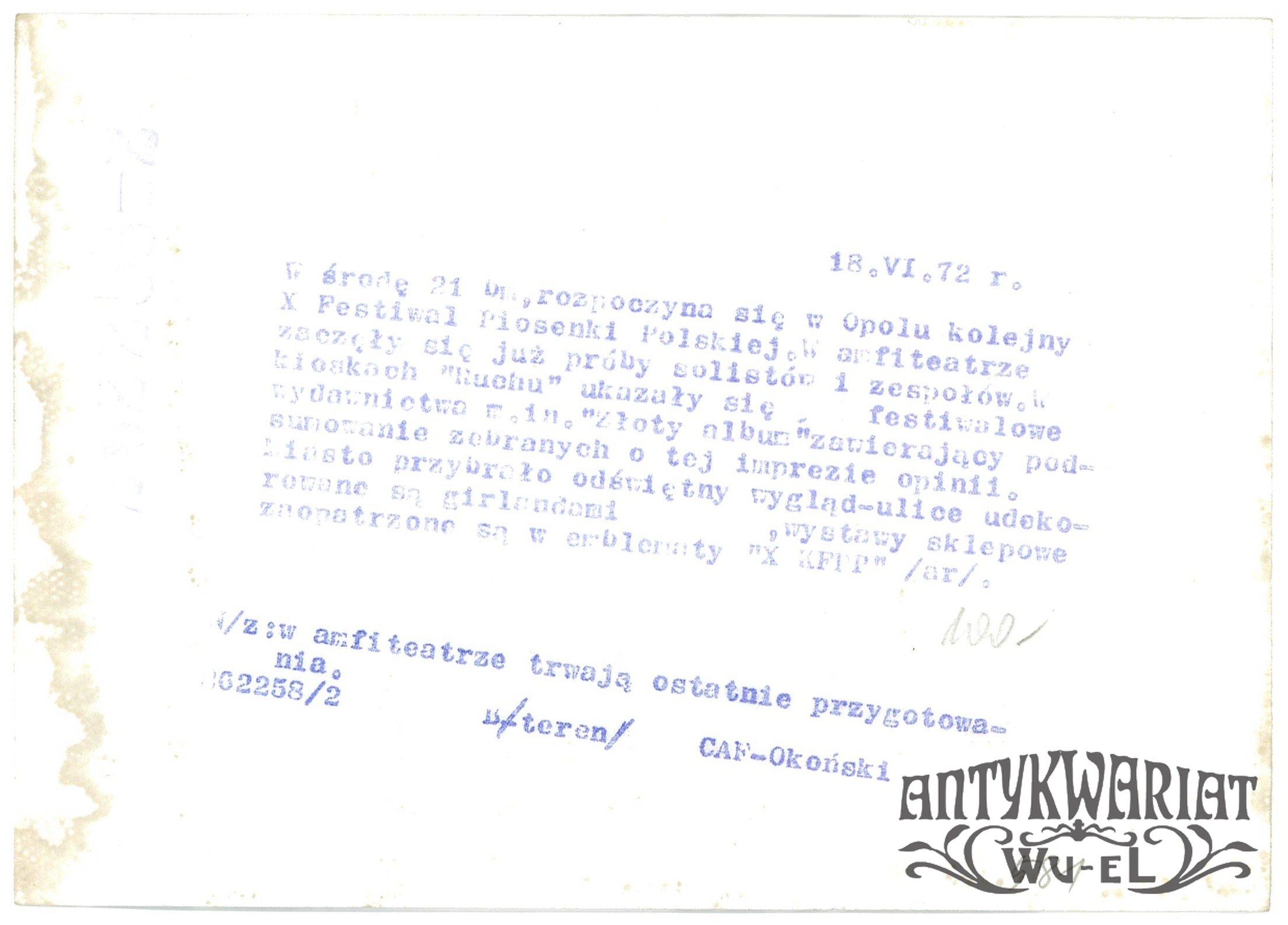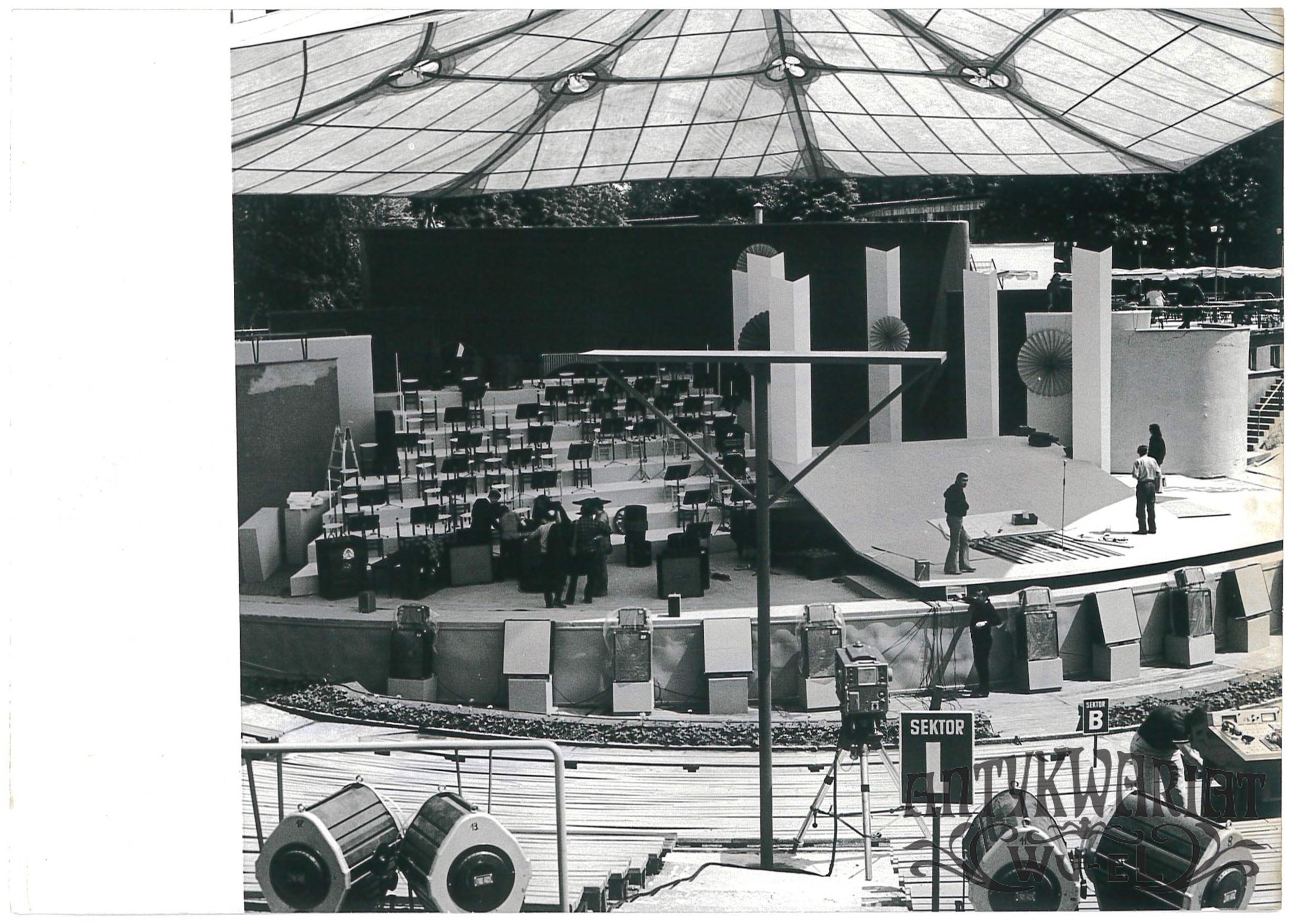 OPOLE. Przygotowania do X Festiwalu Piosenki Polskiej, amfiteatr; fot. CAF - Okoński, 18.06.1972 r.; stan bardzo dobry, wymiary: 18,3 x 13 cm.