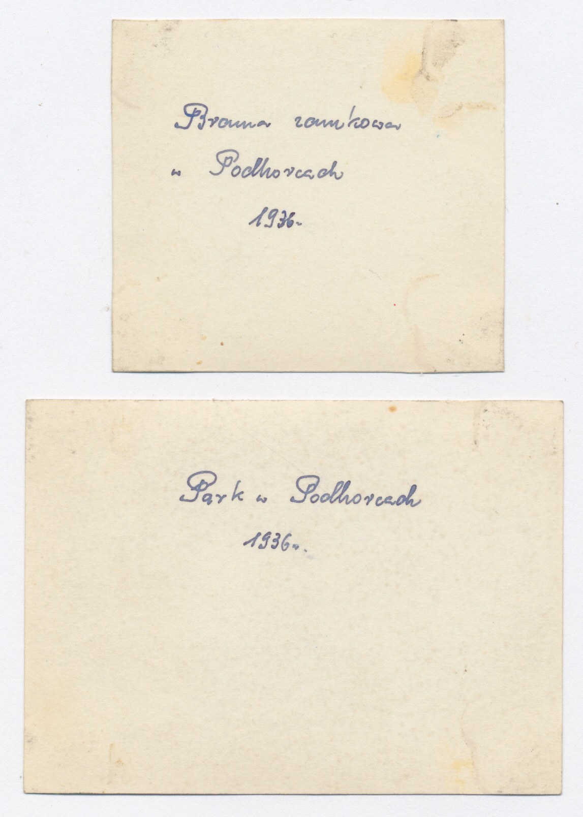 Podhorce - Brama zamkowa i park. Format 6cm x 6.5cm i 6.5cm x 9cm