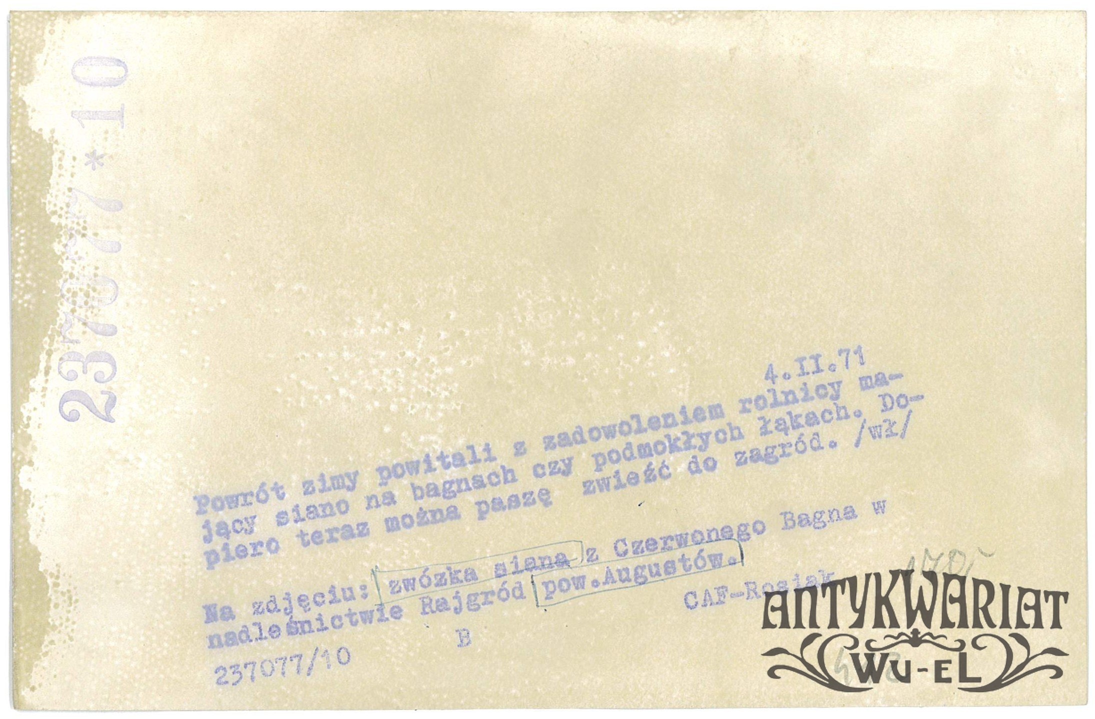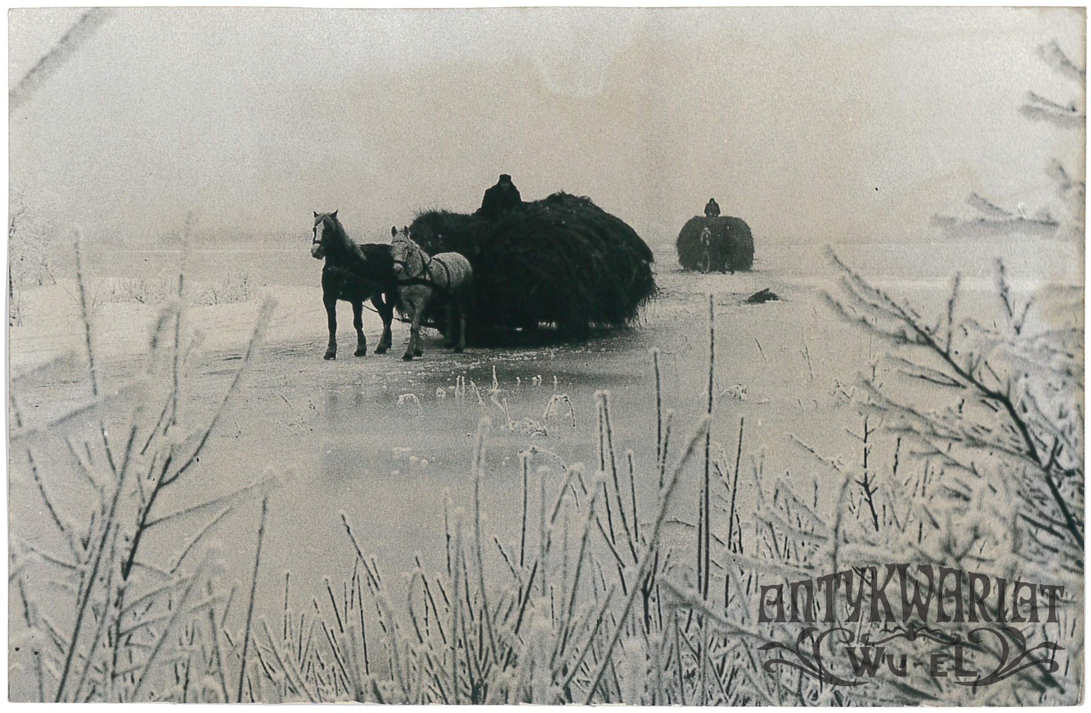 RAJGRÓD (pow. Augustów). Zimowa zwózka siana z Czerwonego Bagna w nadleśnictwie Rajgród; fot. CAF - Rosiak, 4.02.1971 r.; stan bardzo dobry minus, wymiary: 18,1 x 11,8 cm.