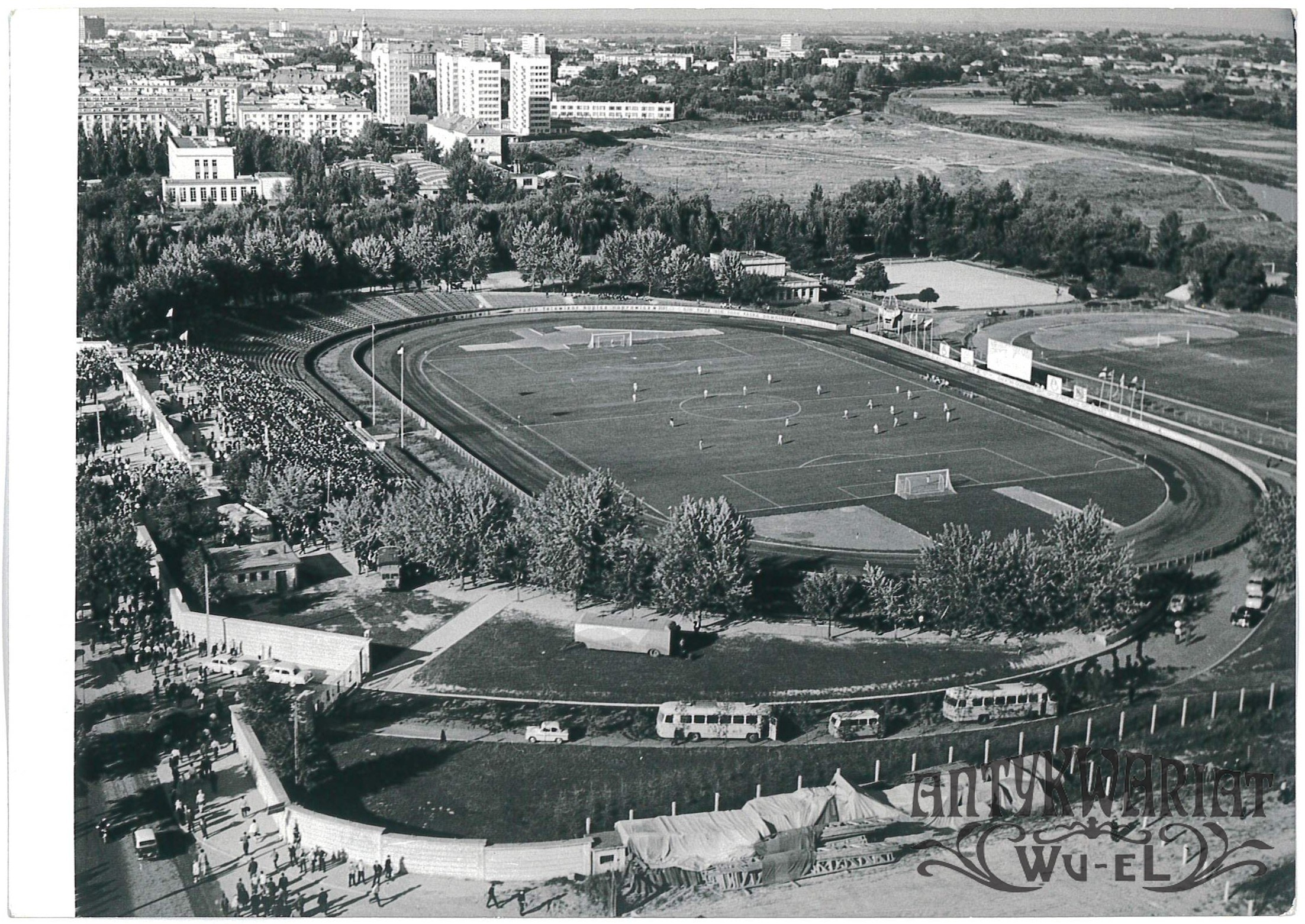 RZESZÓW. Stadion KS Stal, widok z lotu ptaka; fot. CAF - Kwiatkowski, 6.07.1970 r.; stan bardzo dobry, wymiary: 18,4 x 13 cm.