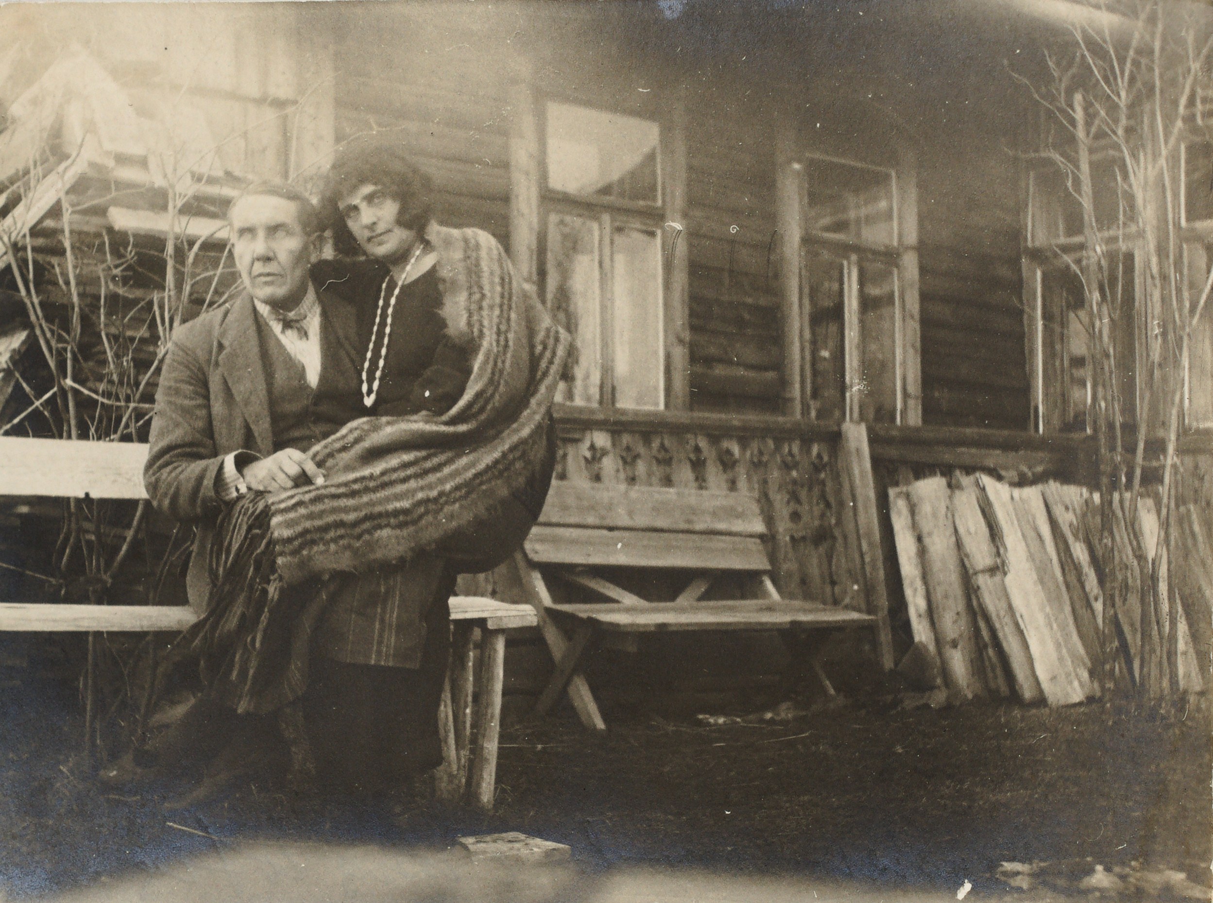 Opisana na odwrocie długopisem: około 1920 r. / Stanisław Kamocki z żoną Zofią.