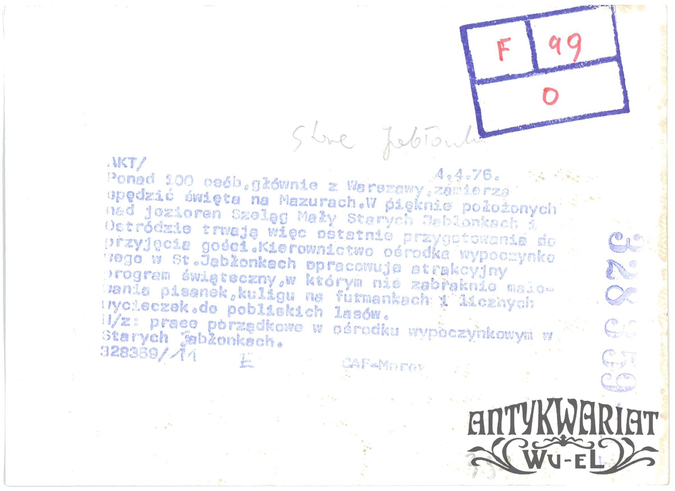 STARE JABŁONKI (pow. Ostróda), ośrodek wypoczynkowy nad jeziorem, fot. St. Moroz, 1976