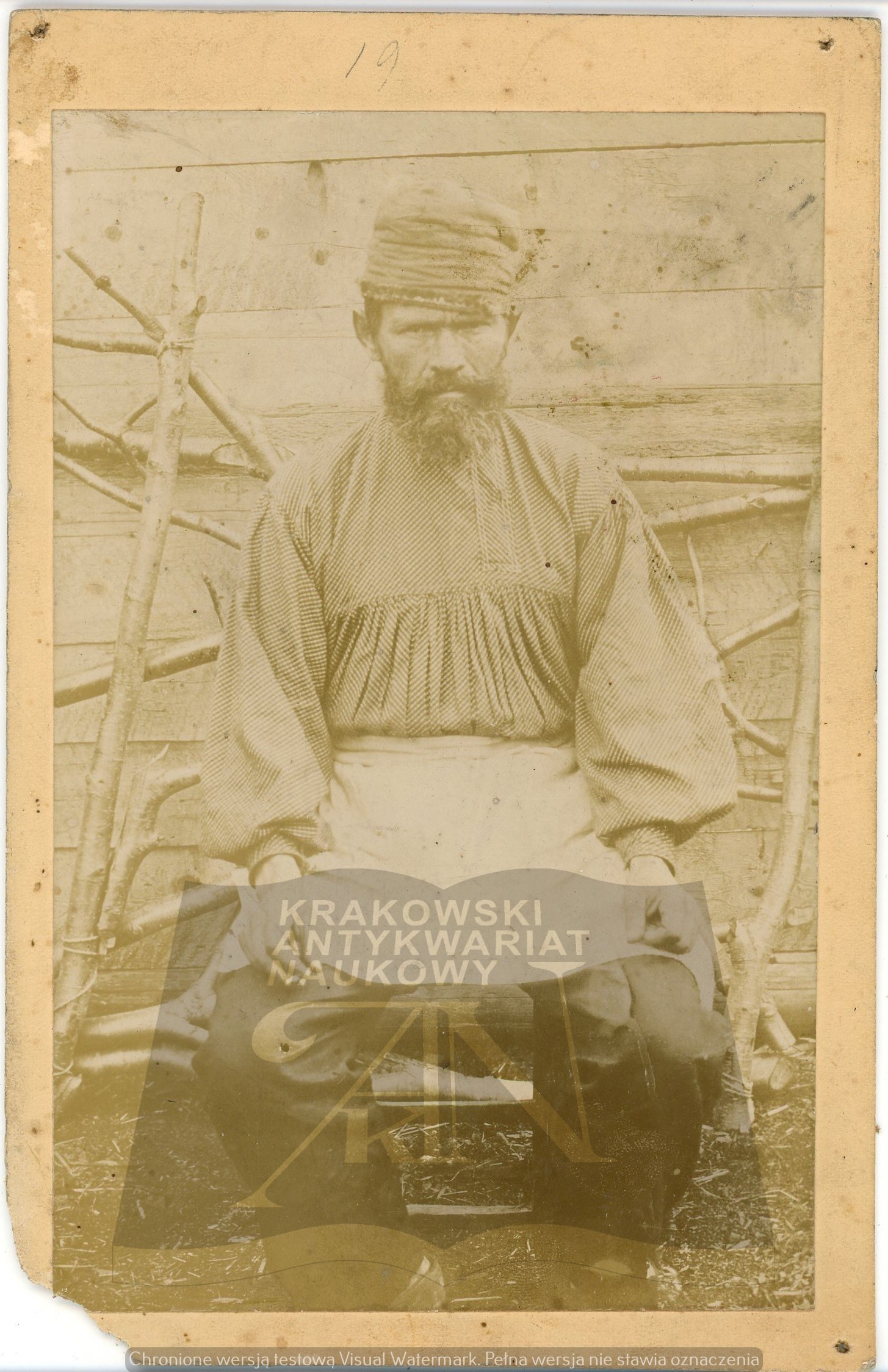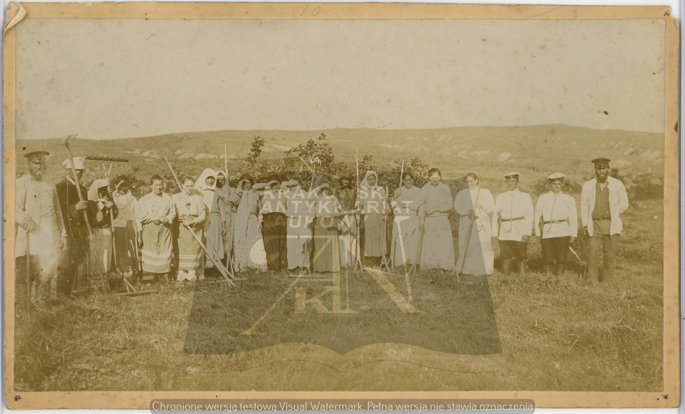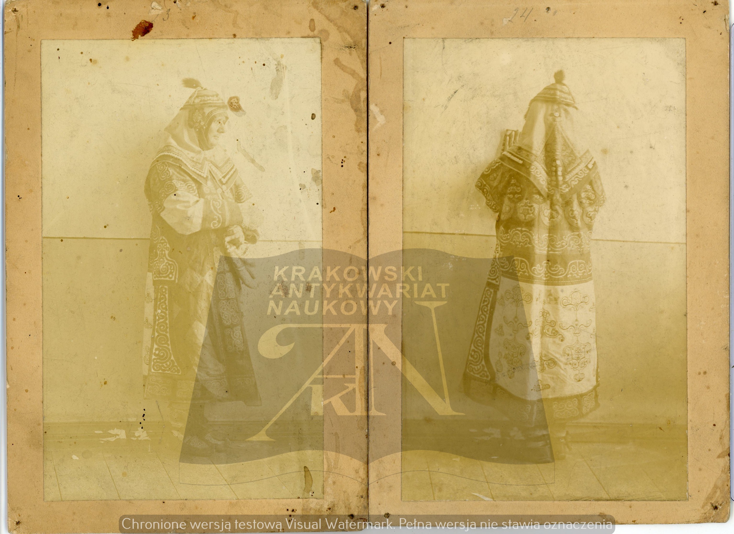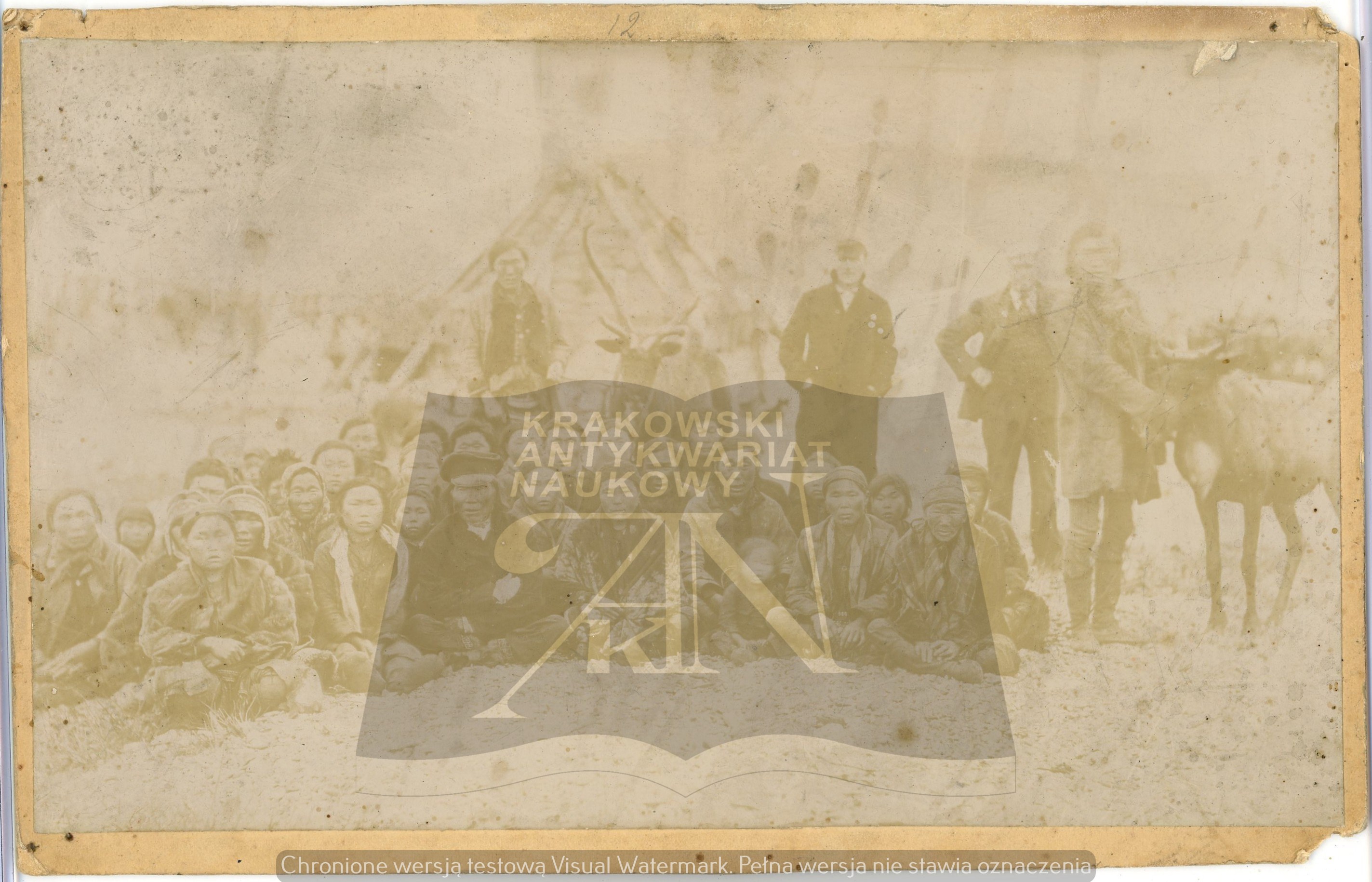 Wymiary zróżnicowane: nr 1 - 183 x 170 mm, podpisana Ajny; nr 2 - 237 x 157 mm, podpisana Gilaki; nr 3 - 232 x 141 mm, po prawej stronie najprawdopodobniej Bronisław Piłsudski; nr 4 - 253 x 102 mm, podpisana Poczta w Mikołajewsku; nr 5 - 129 x 189 mm każda; nr 6 - 123 x 177 mm; nr 7 - 183 x 132 mm; nr 8 - 194 x 135 mm; nr 9 - 243 x 165 mm; nr 10 - 122 x 188 mm. Razem 11 fotografii. Wymiary podane z kartonikiem. Narożne ślady po pinezkach, zabrudzenia i drobne uszkodzenia rogów i krawędzi. Fotografie nieznane w literaturze, unikalny zestaw.