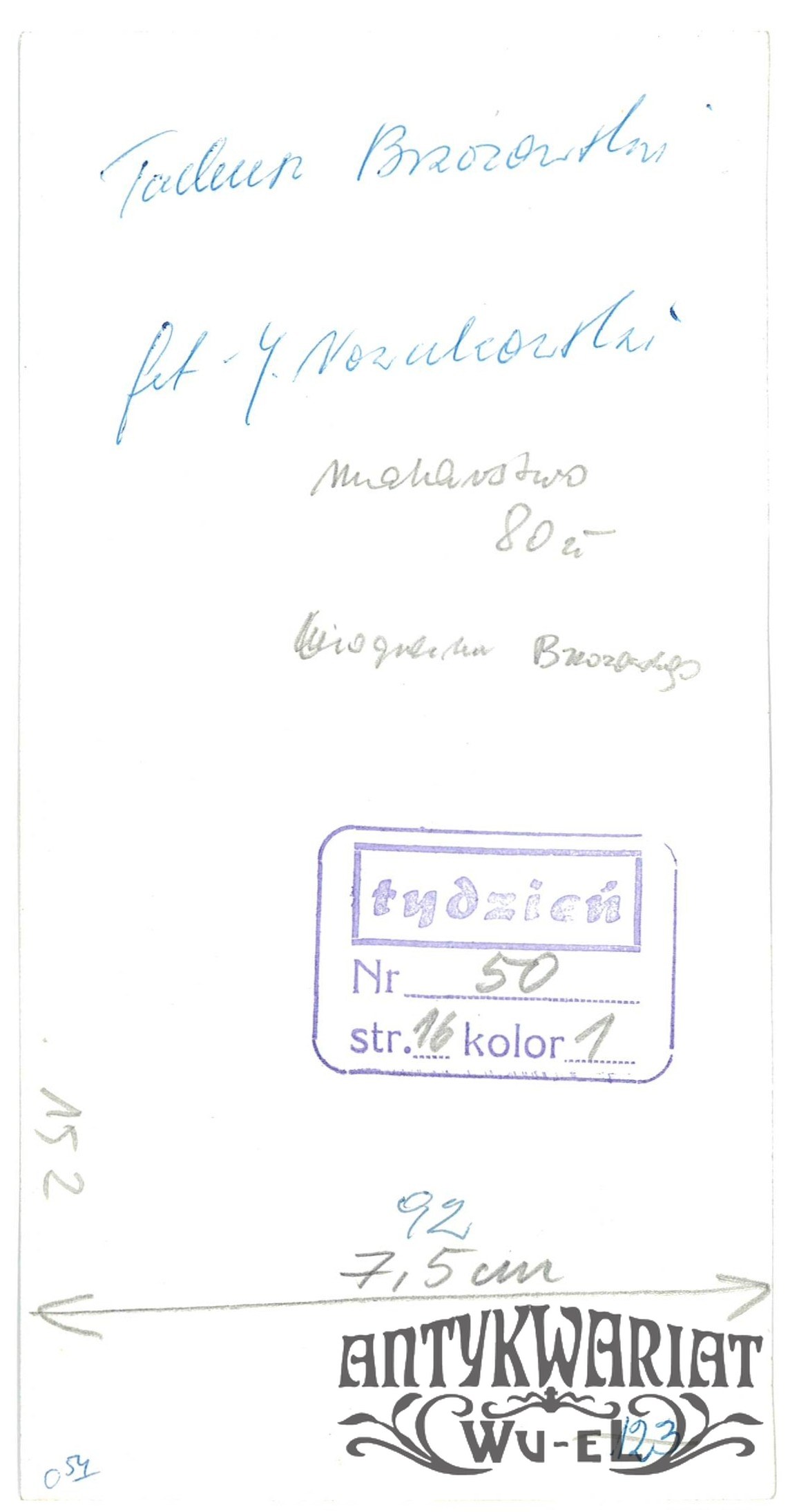 TADEUSZ BRZOZOWSKI, artysta malarz; fot. Nowakowski; stan bardzo dobry, wymiary: 9,2 x 18 cm.