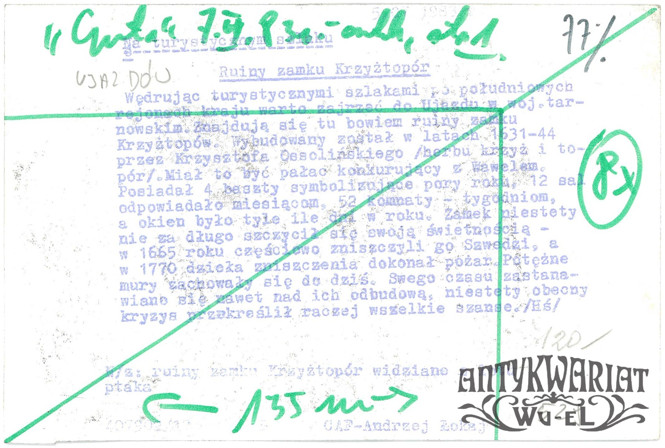 UJAZD. (pow. Opatów). Ruiny Zamku Krzyżtopórz lotu ptaka; fot. CAF - Andrzej Łokaj, 5.07. 1983 r.; stan bardzo dobry, wymiary: 17,9 x 11,9 cm.