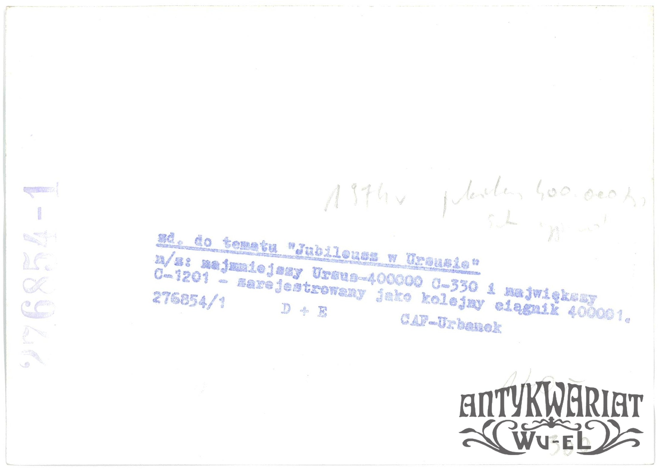 WARSZAWA. Najmniejszy ciągnik Ursus C-330 (400-tysięczna sztuka) i największy C-1201 (zarejestrowany jako 400 001 szt.); fot. CAF - Urbanek, 1974 r.; stan bardzo dobry, wymiary: 18,3 x 12,9 cm.