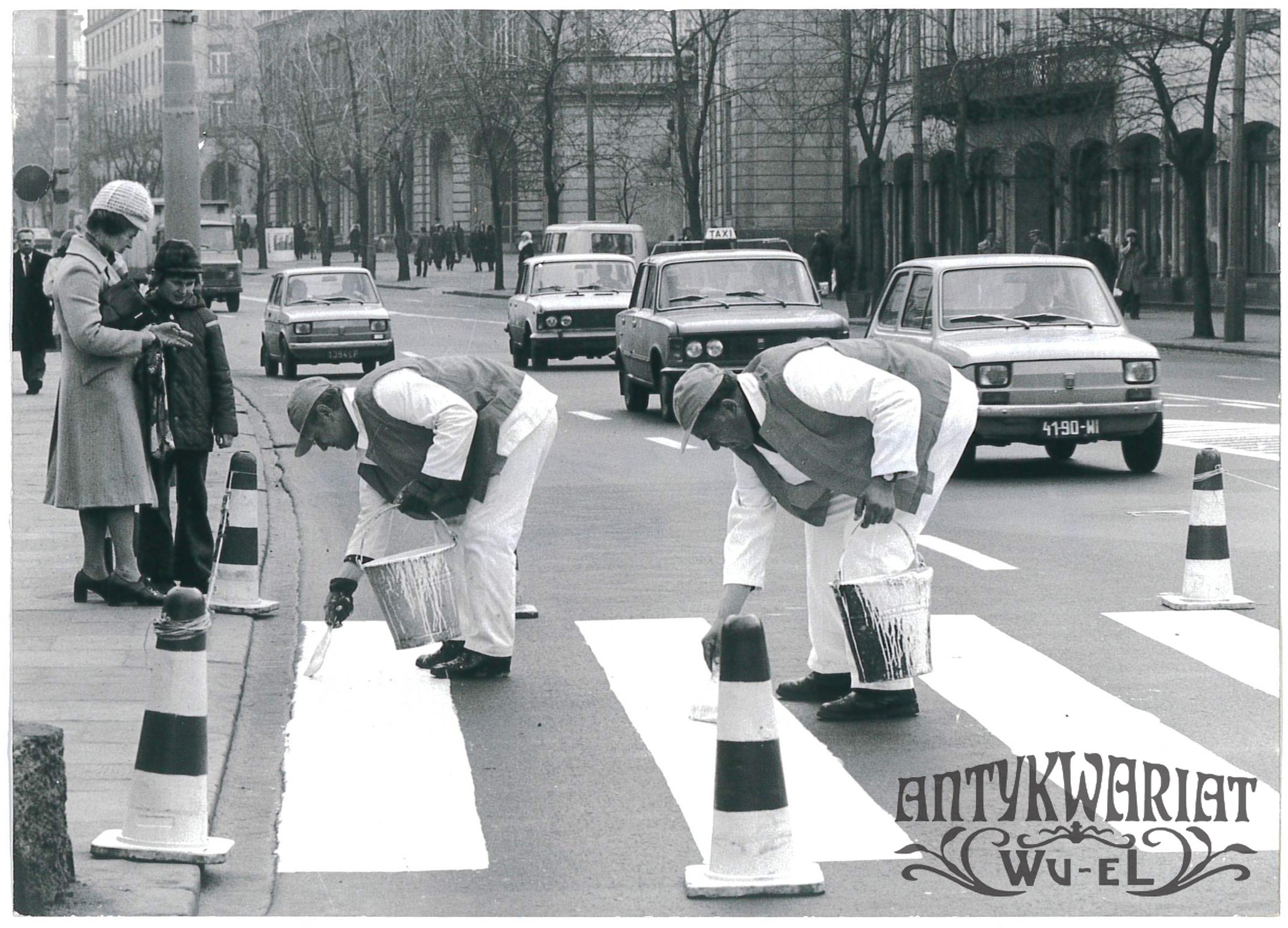 WARSZAWA, Krakowskie Przedmieście, malowanie pasów, fot. Rosiak, 1976