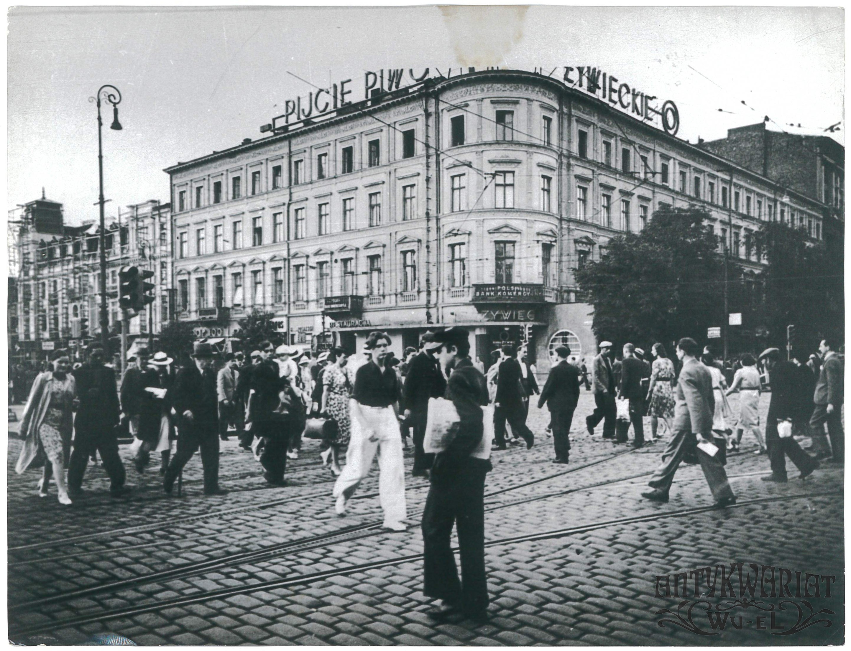 WARSZAWA. Róg Al. Jerozolimskich i ul. Marszałkowskiej, późniejsza odbitka z 25.08.1964 r.; stan dobry, wymiary: 24 x 18,3 cm.