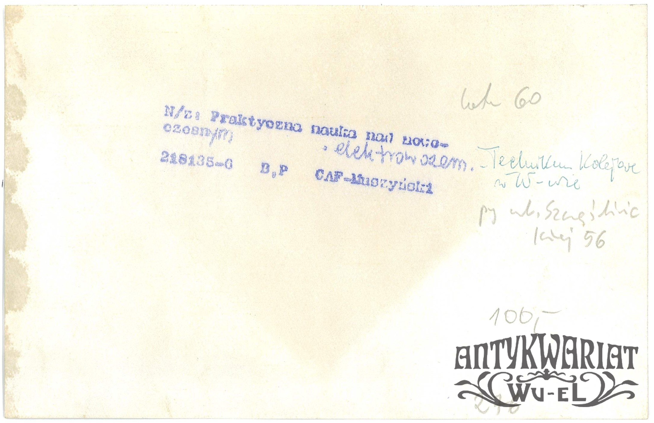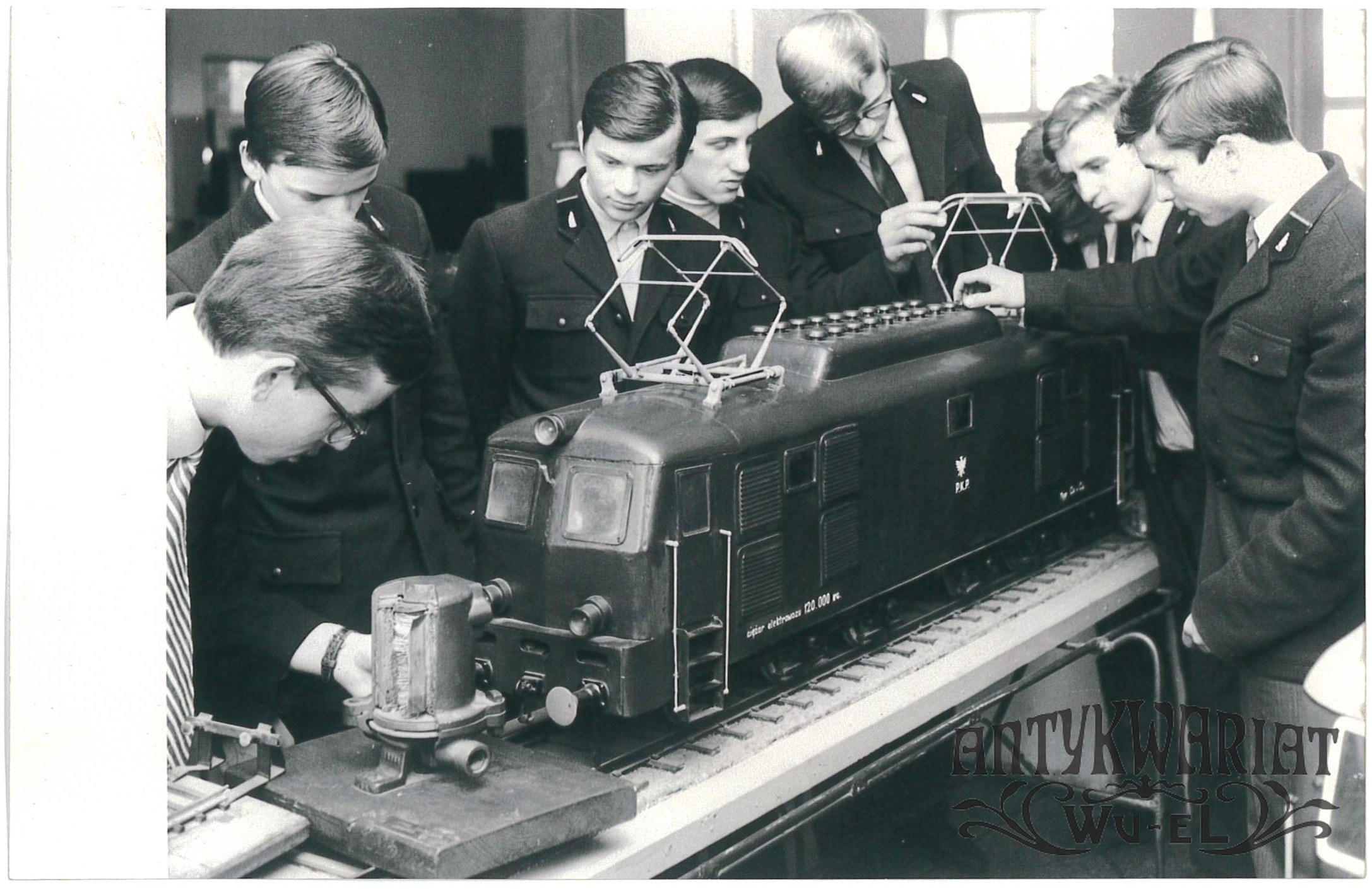 WARSZAWA. Technikum Kolejowe przy ul. Szczęśliwickiej, praktyczna nauka nad modelem elektrowozu; fot. CAF - Muszyński, lata 60.; stan bardzo dobry, wymiary: 18,1 x 11,6 cm.
