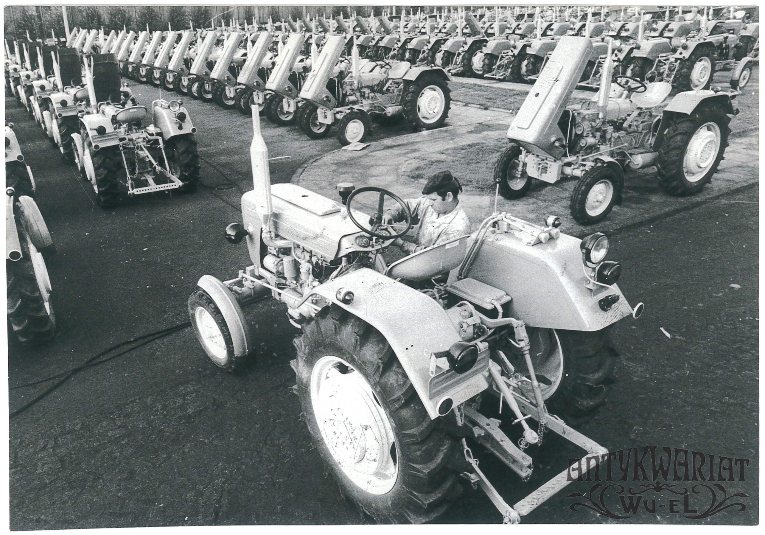 WARSZAWA, Ursus, Marian Jurkowski przy ciągnikach, fot. T. Walczak, 1976