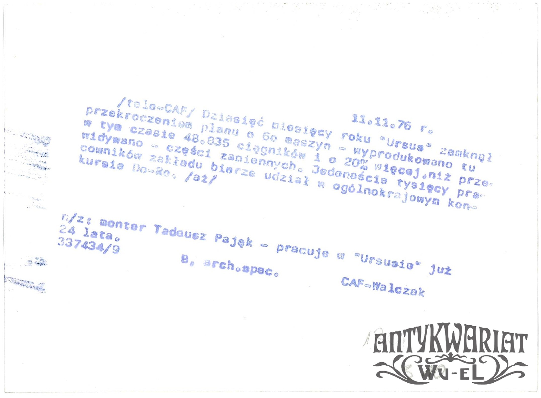 WARSZAWA. Ursus, monter Tadeusz Pająk podczas pracy; fot. CAF - Walczak, 11.11.1976 r.; stan bardzo dobry, wymiary: 18 x 13 cm.