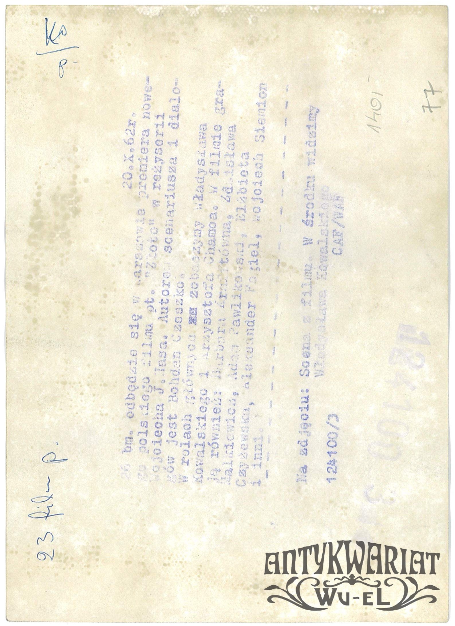 WŁADYSŁAW KOWALSKI na planie filmu "Złoto" w reżyserii Wojciecha Jerzego Hasa; fot. CAF/WAF, 20.10.1962 r.; stan bardzo dobry minus, wymiary: 13 x 18,2 cm.
