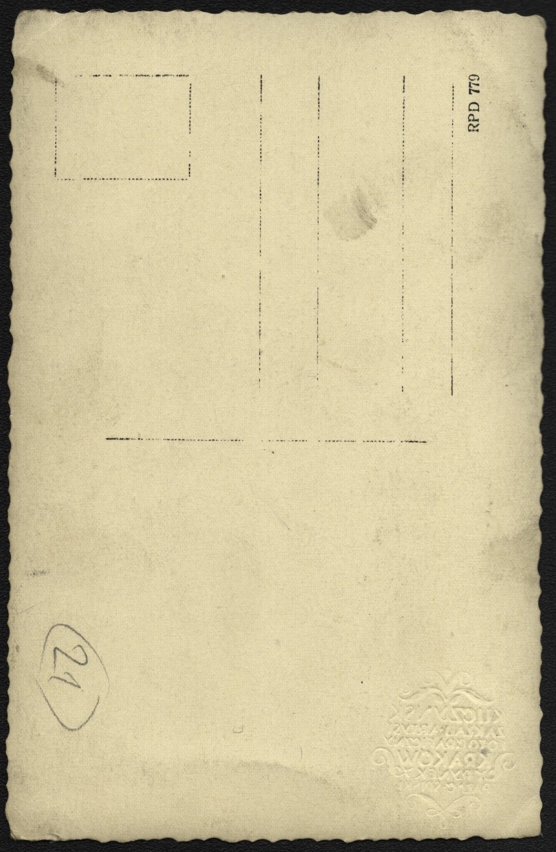 Fotografia o wym. 13,7 x 9 cm. Na awersie suchy tłok: Kuczyński, Zakład artyst. fotograficzny, Kraków rynek.