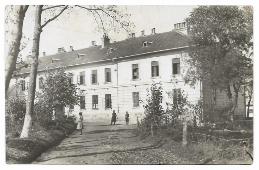 [WOJSKO Polskie - koszary 12. Kresowego Pułk Artylerii Lekkiej - fotografia sytuacyjna]. [1929]. Fotografia form. 8,9x14 cm, nieznanego autorstwa.
