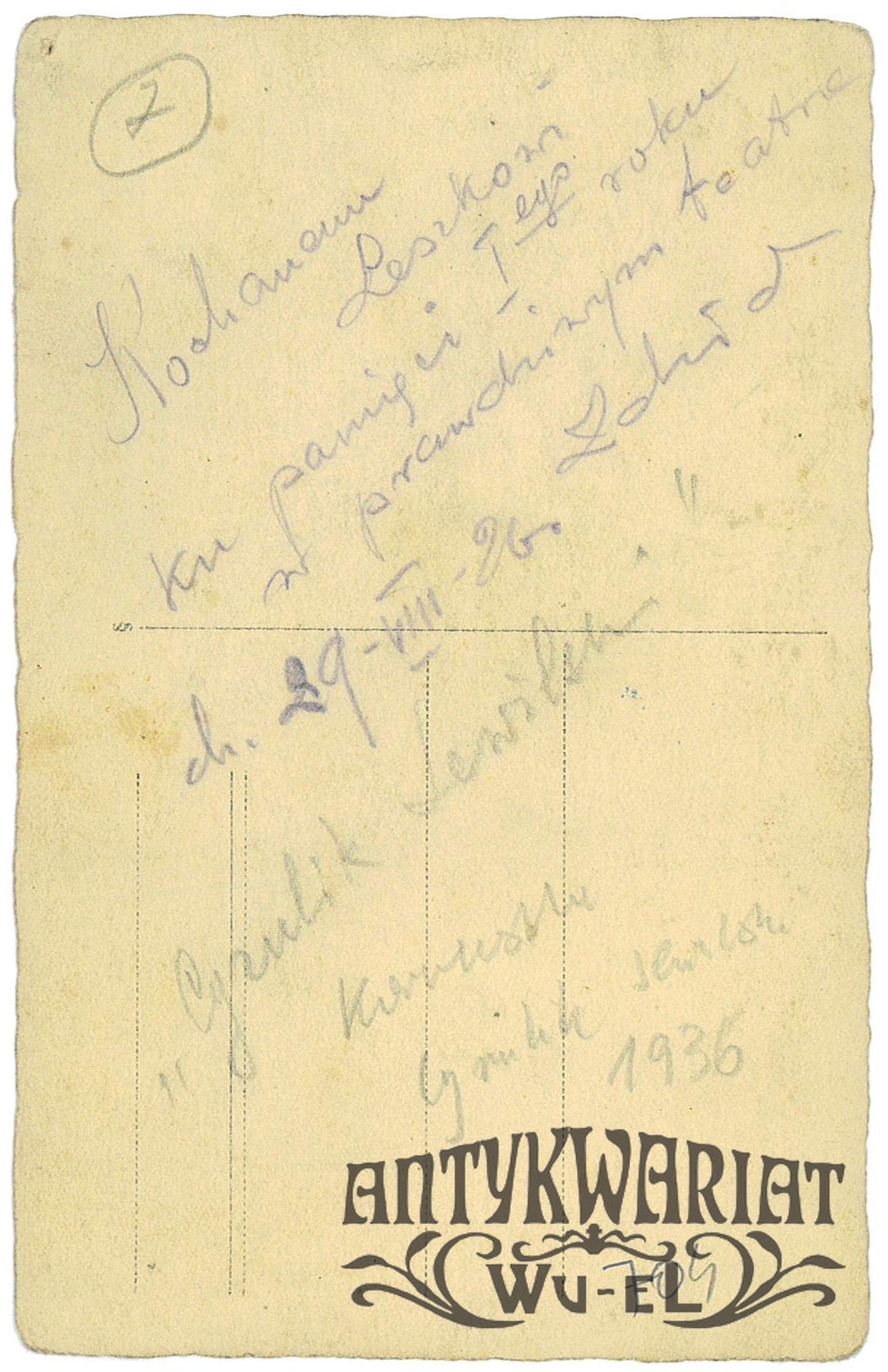 ZDZISŁAW KARCZEWSKI, „Cyrulik sewilski”, dedykacja dla Leszka, Wilno, 1936