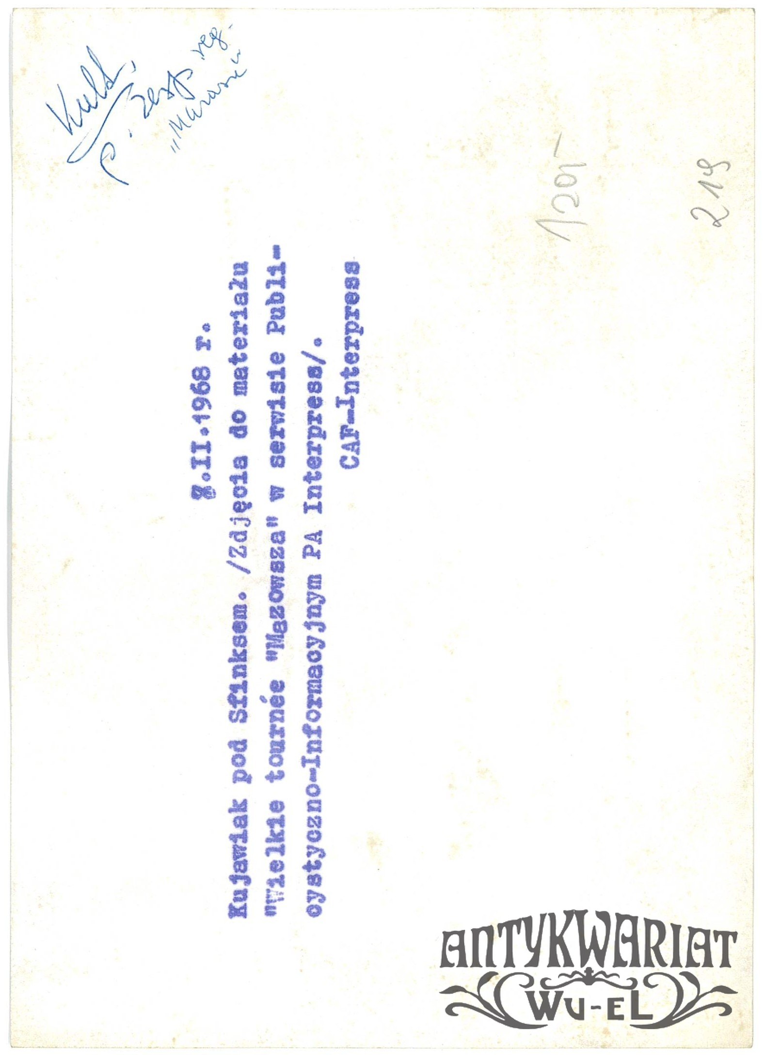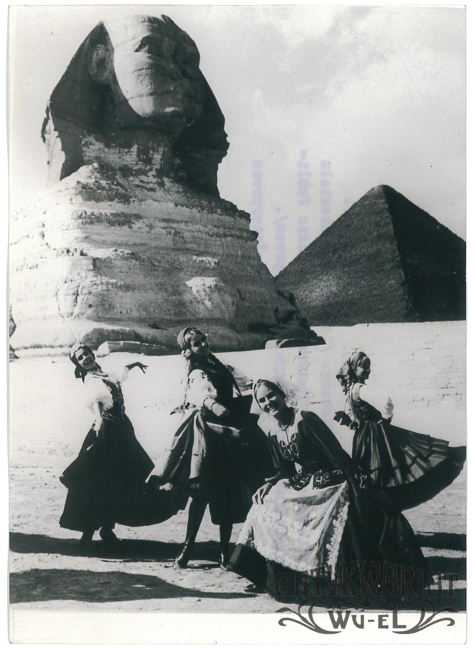 ZESPÓŁ PIEŚNI i TAŃCA MAZOWSZE. Wielkie tournee po Egipcie, kujawiak pod Sfinksem; fot. CAF - Interpress, 7.02.1968 r.; stan bardzo dobry, wymiary: 13 x 18,1 cm.