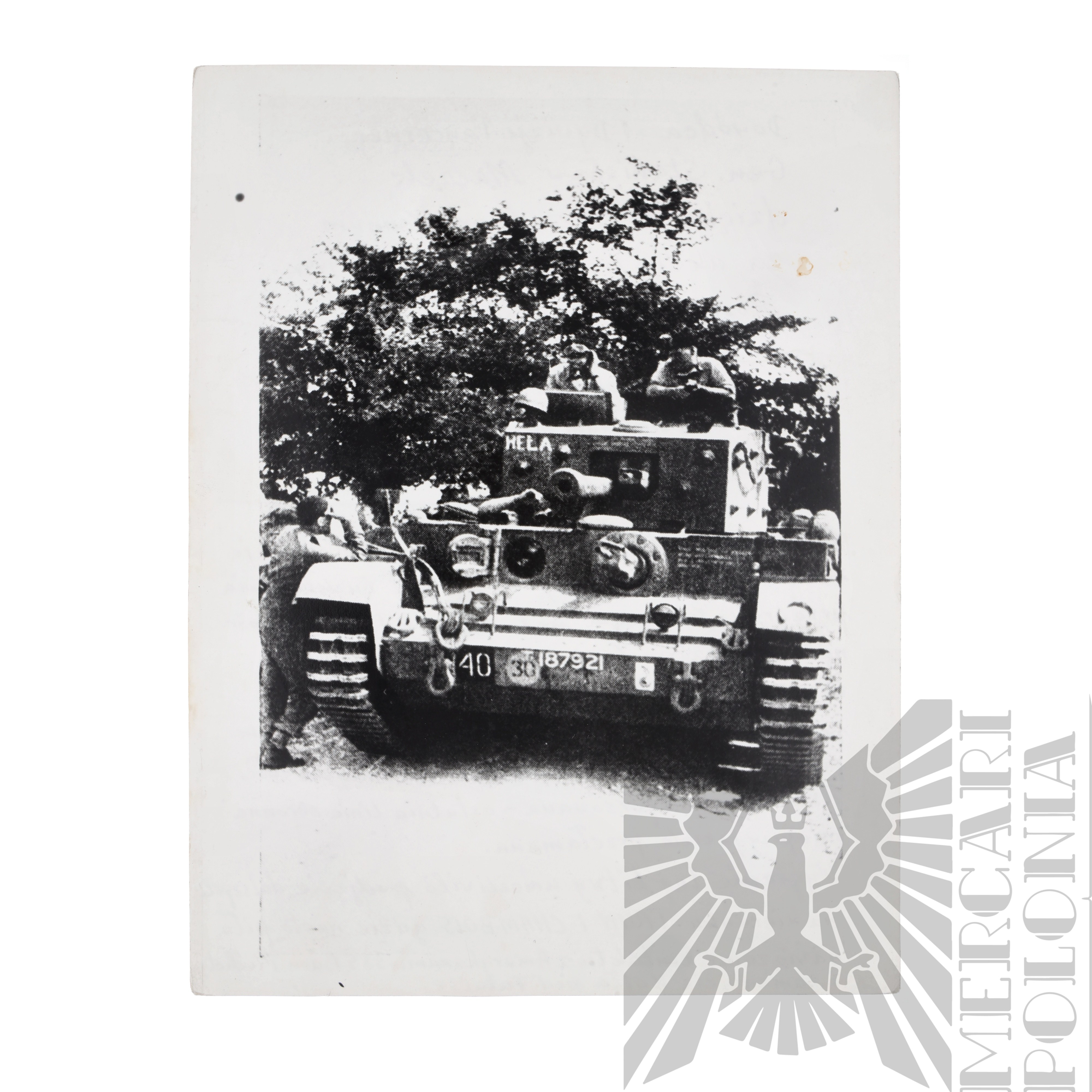 Odbitka fotografii czołgu dowodzenia generała Stanisława Maczka o nazwie własnej “Hela” w malowaniu Kwatery Głównej 1 Dywizji Pancernej.