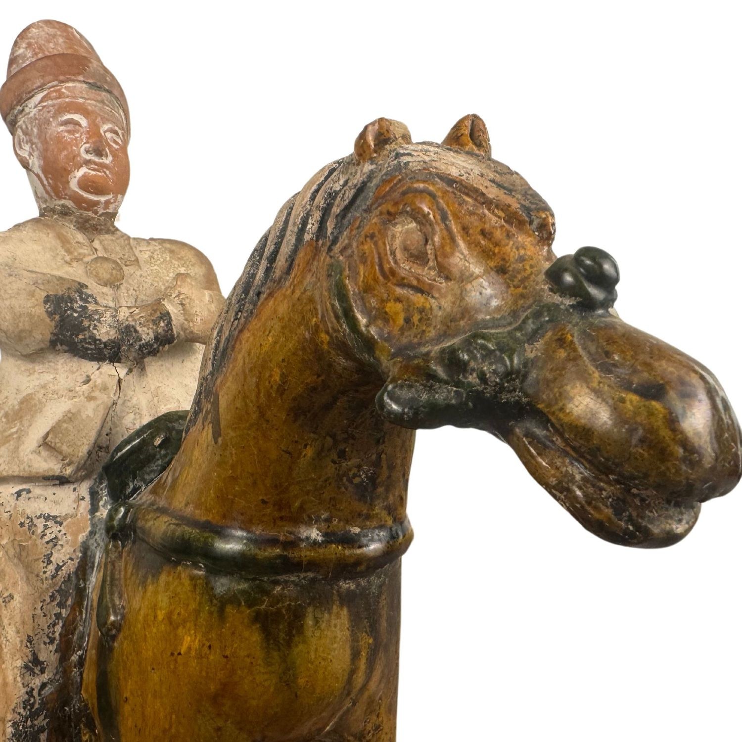Ancient terracotta sculpture, depicting a horse with a Chinese figure.