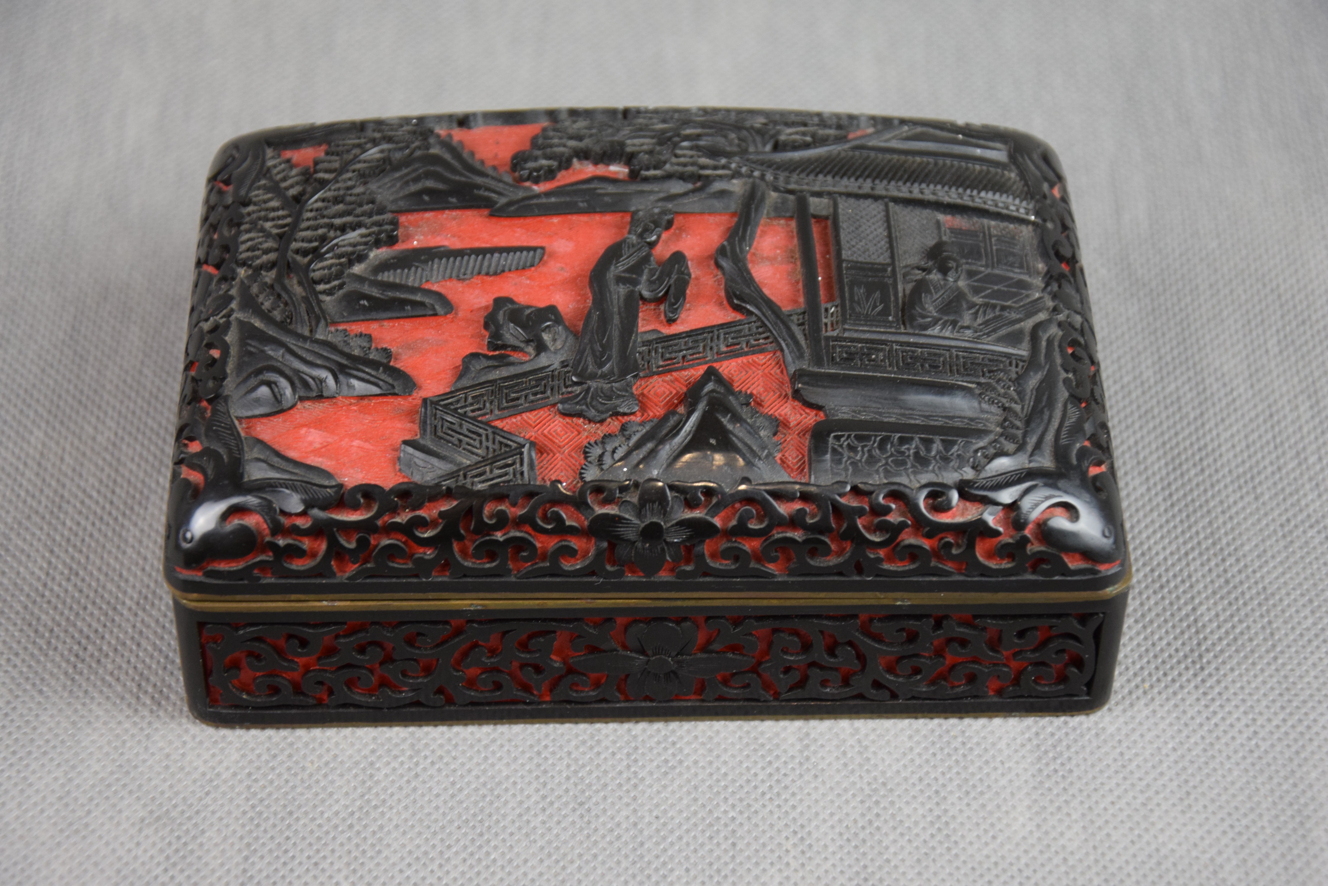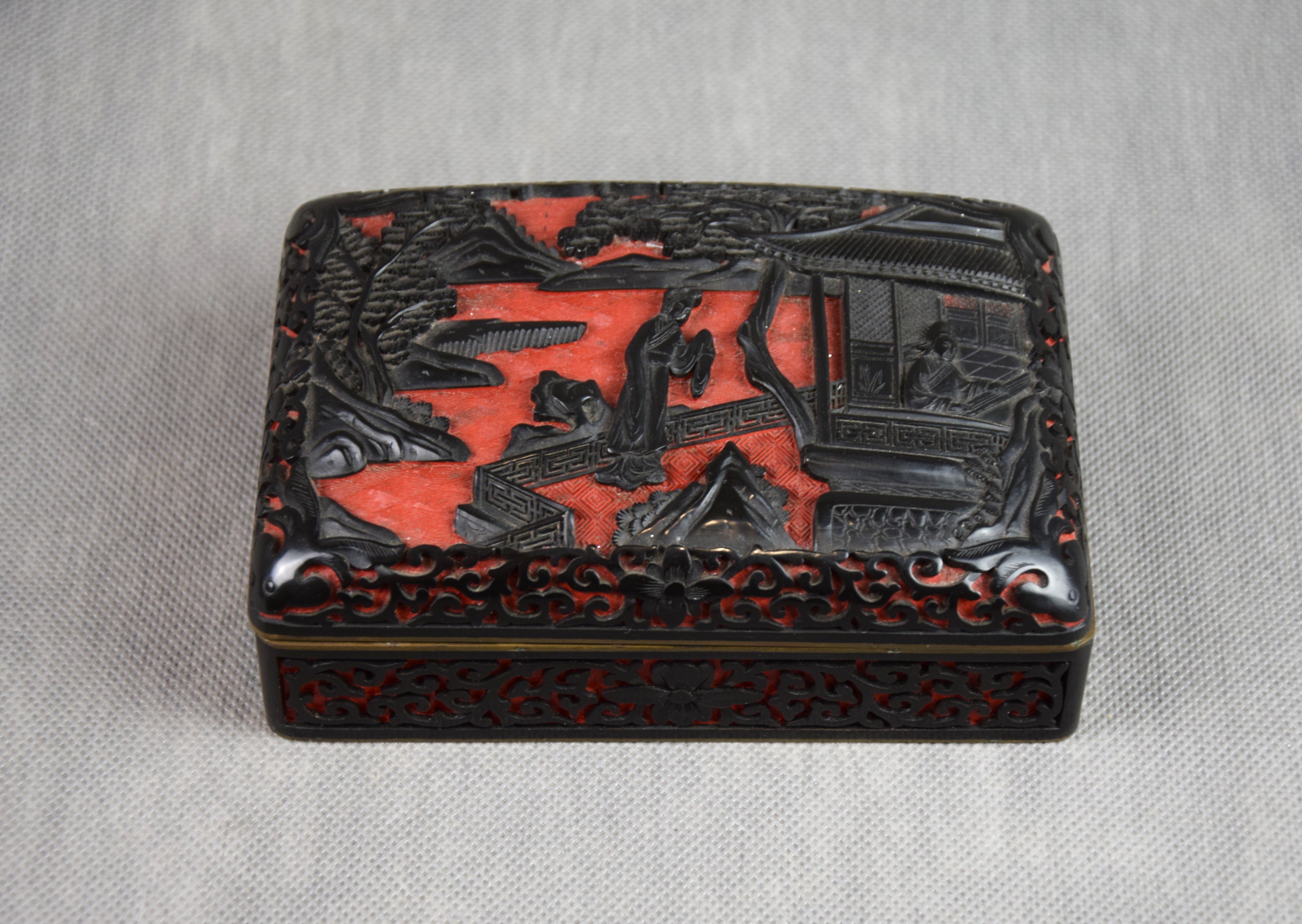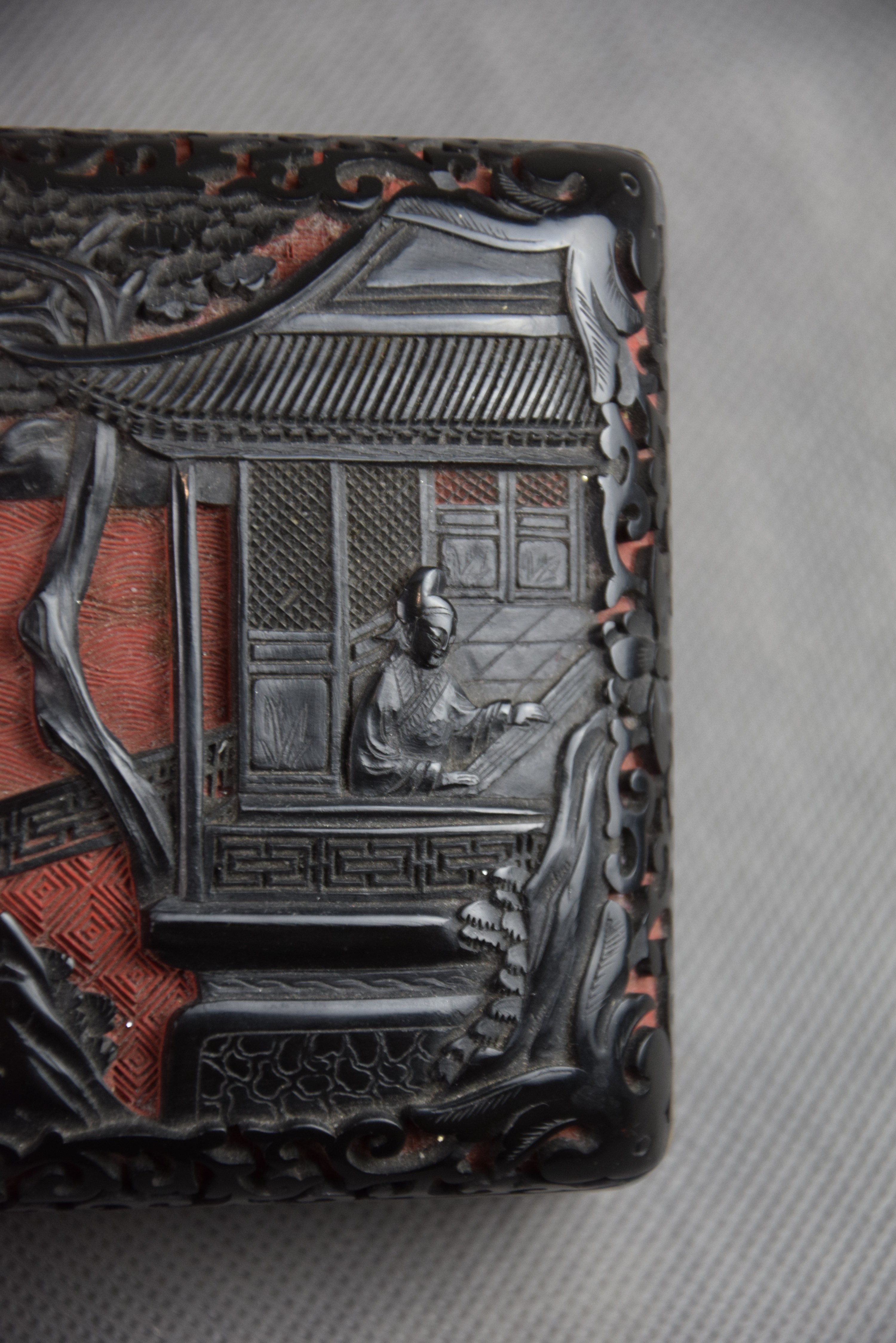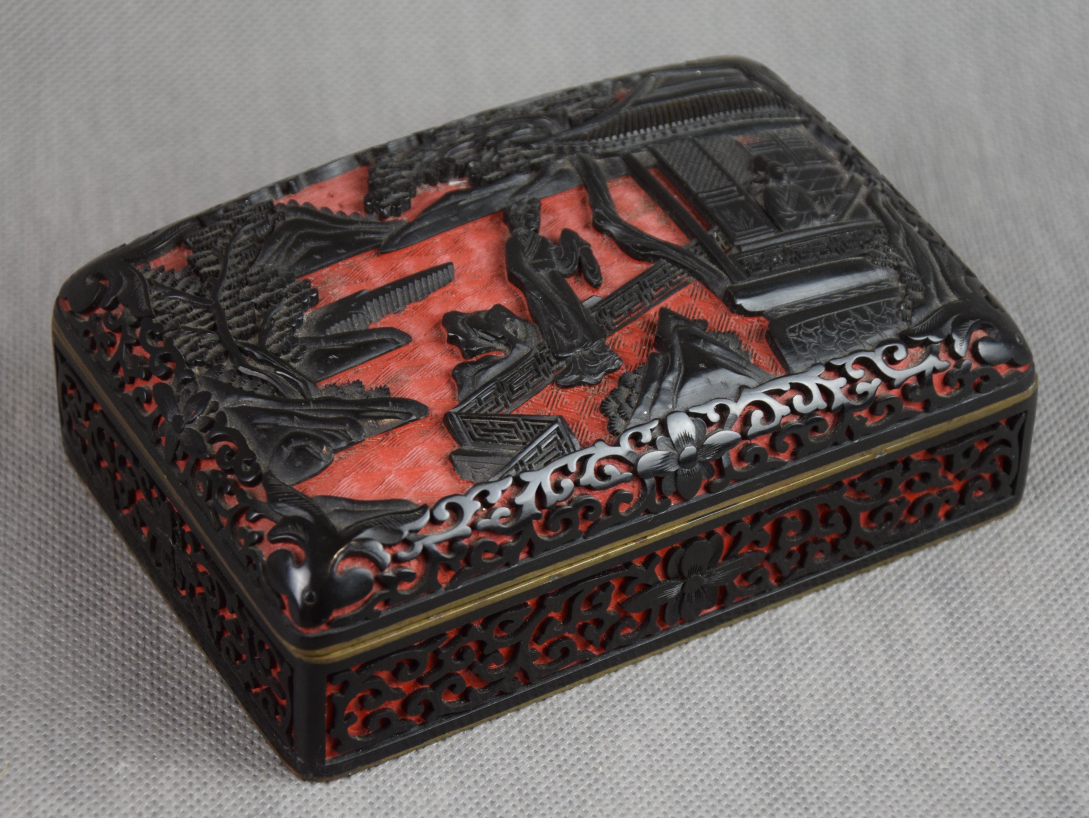 Kaseta z rzeźbionej czarnej i czerwonej laki.