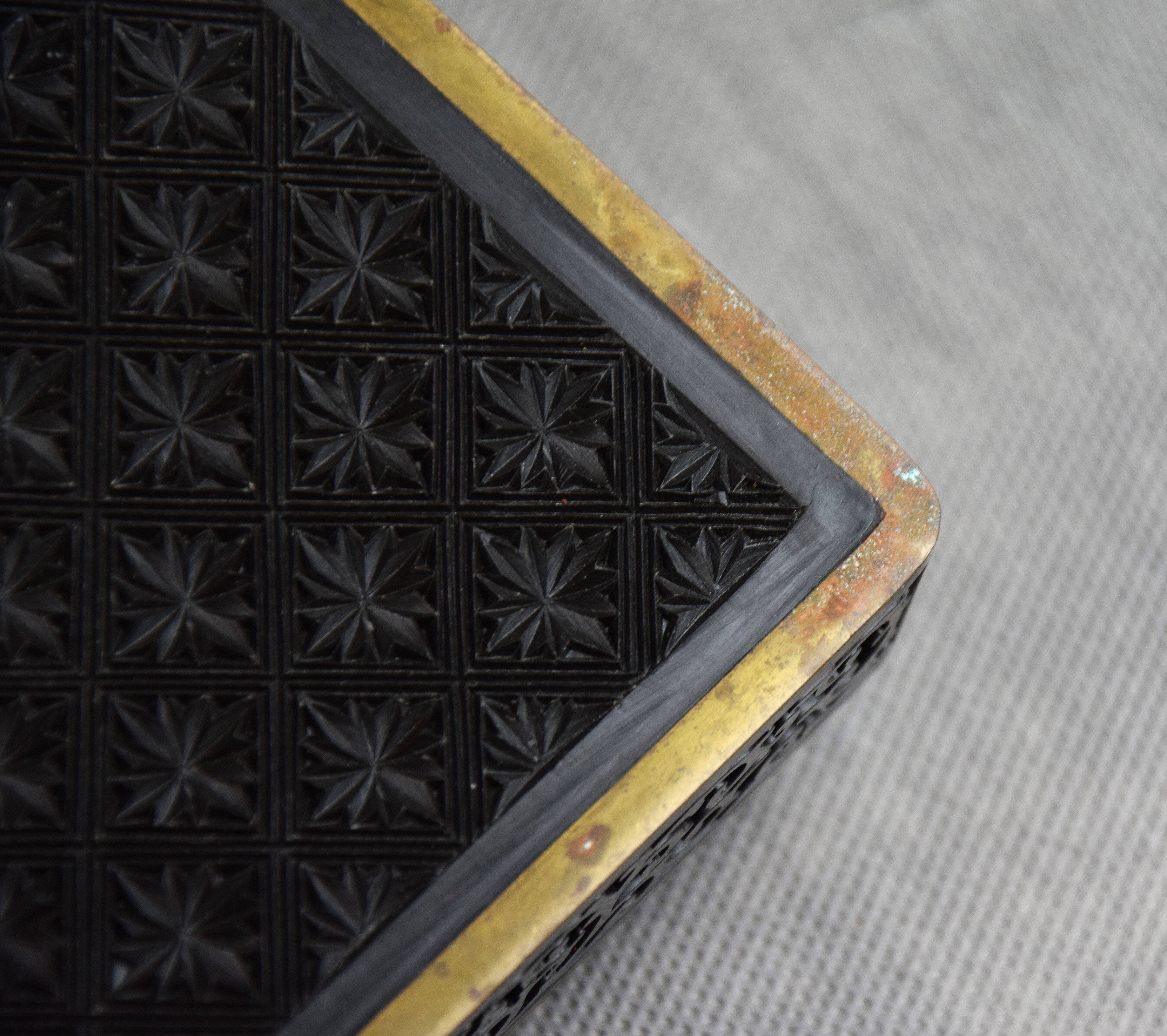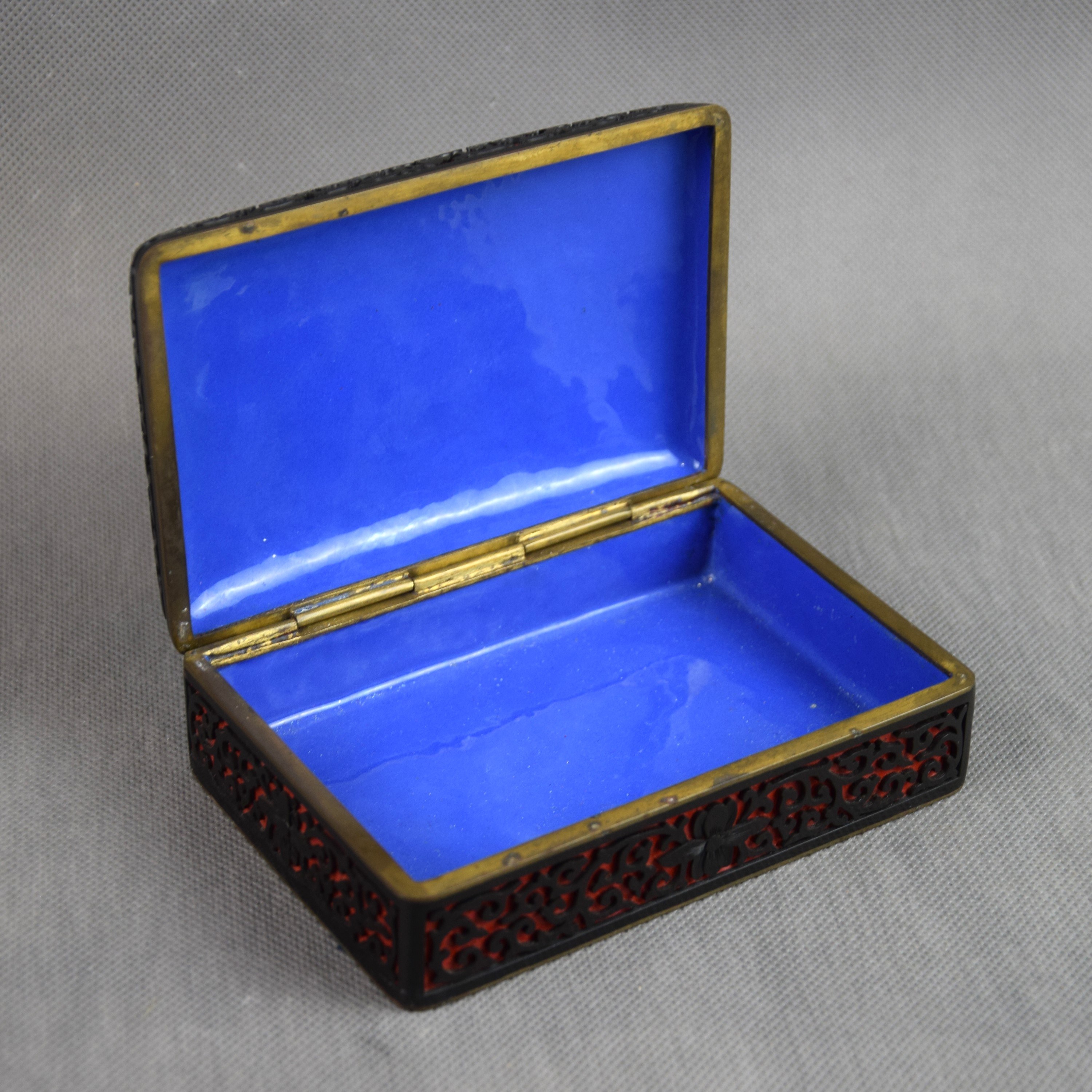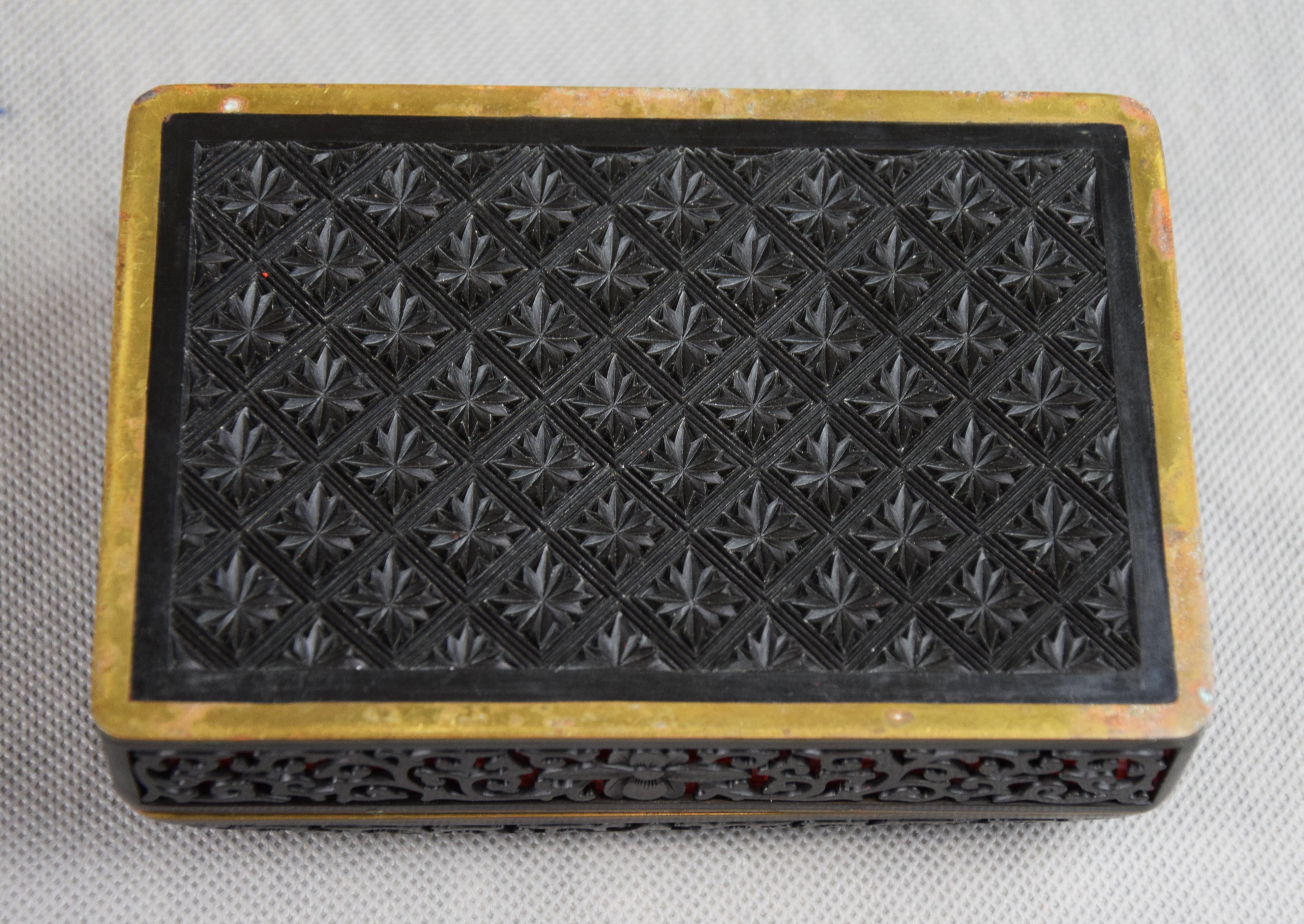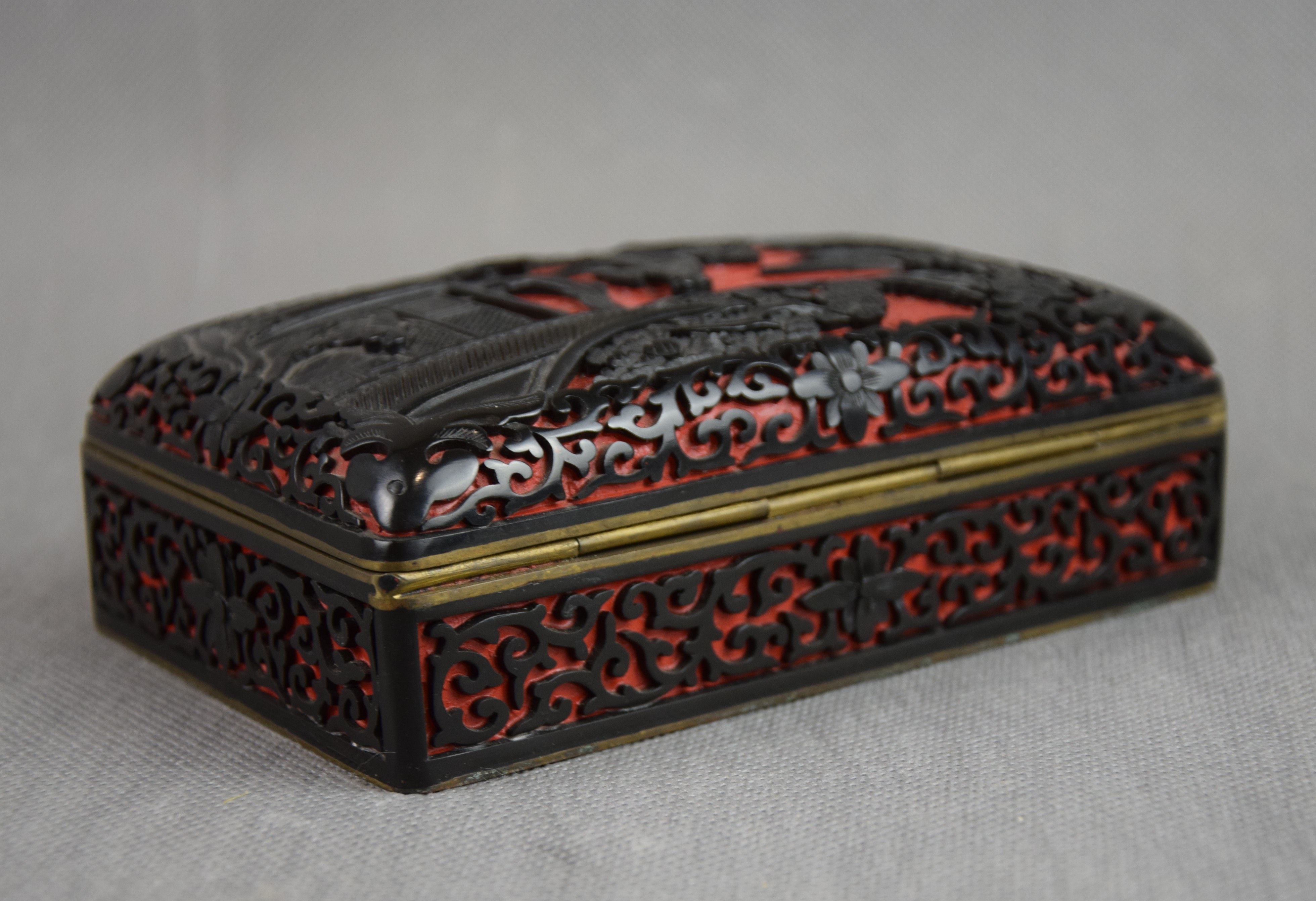 Kaseta z rzeźbionej czarnej i czerwonej laki.