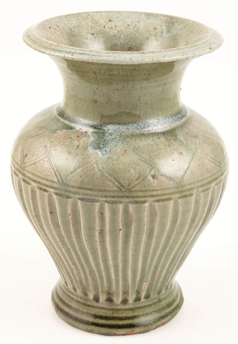 Porcelana, relief podszkliwny, szkliwo seladonowe, wys. 24 cm