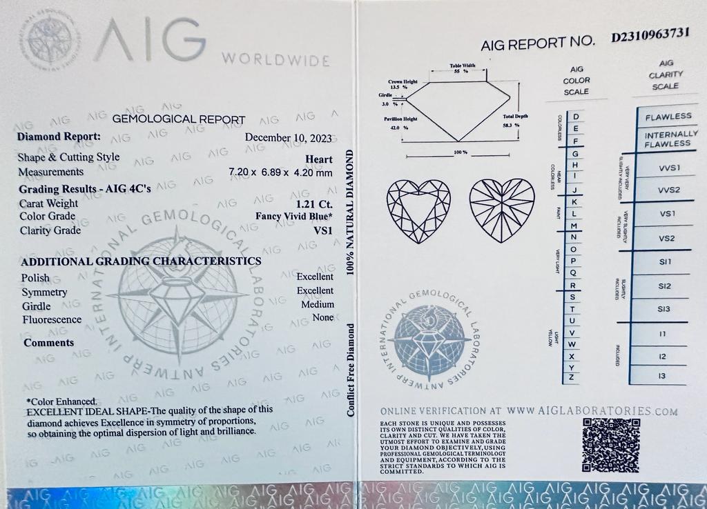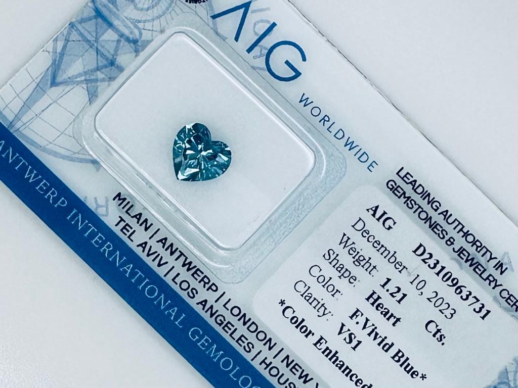 EXALT COLOR DIAMOND 1.21 CARATS FANCY VIVID BLUE COLOR* - VS1 CLARITY - HEART CUT - AIG CERTIFICATE - C31203