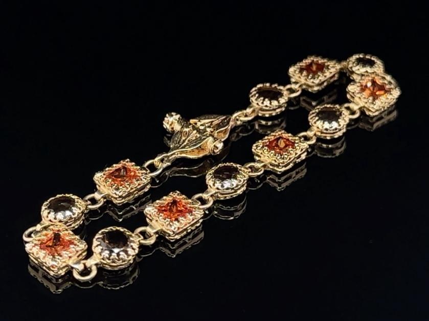 14K YELLOW GOLD 11.24 GR BRACELET WITH CITRIN QUARTZ 9.00 CTS AND SMOKY QUARTZ 6.00 CTS 17CM GEMMOLOGICAL CERTIFICATE MAROZ DIAMONDS LTD ISRAEL DIAMOND EXCHANGE MEMBER - 24K40101