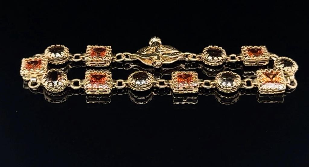 14K YELLOW GOLD 11.24 GR BRACELET CITRIN & SMOKY QUARTZ - 24K40101