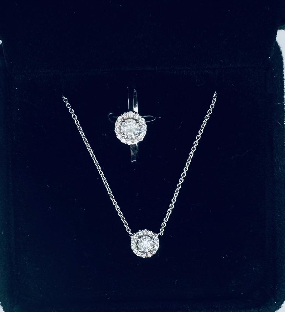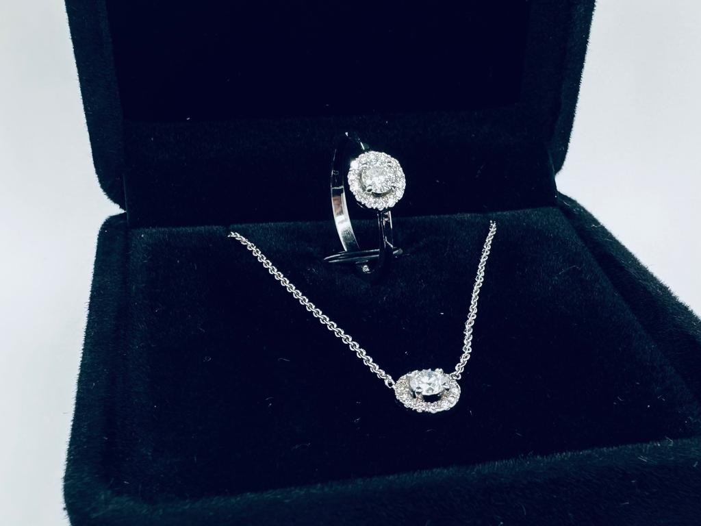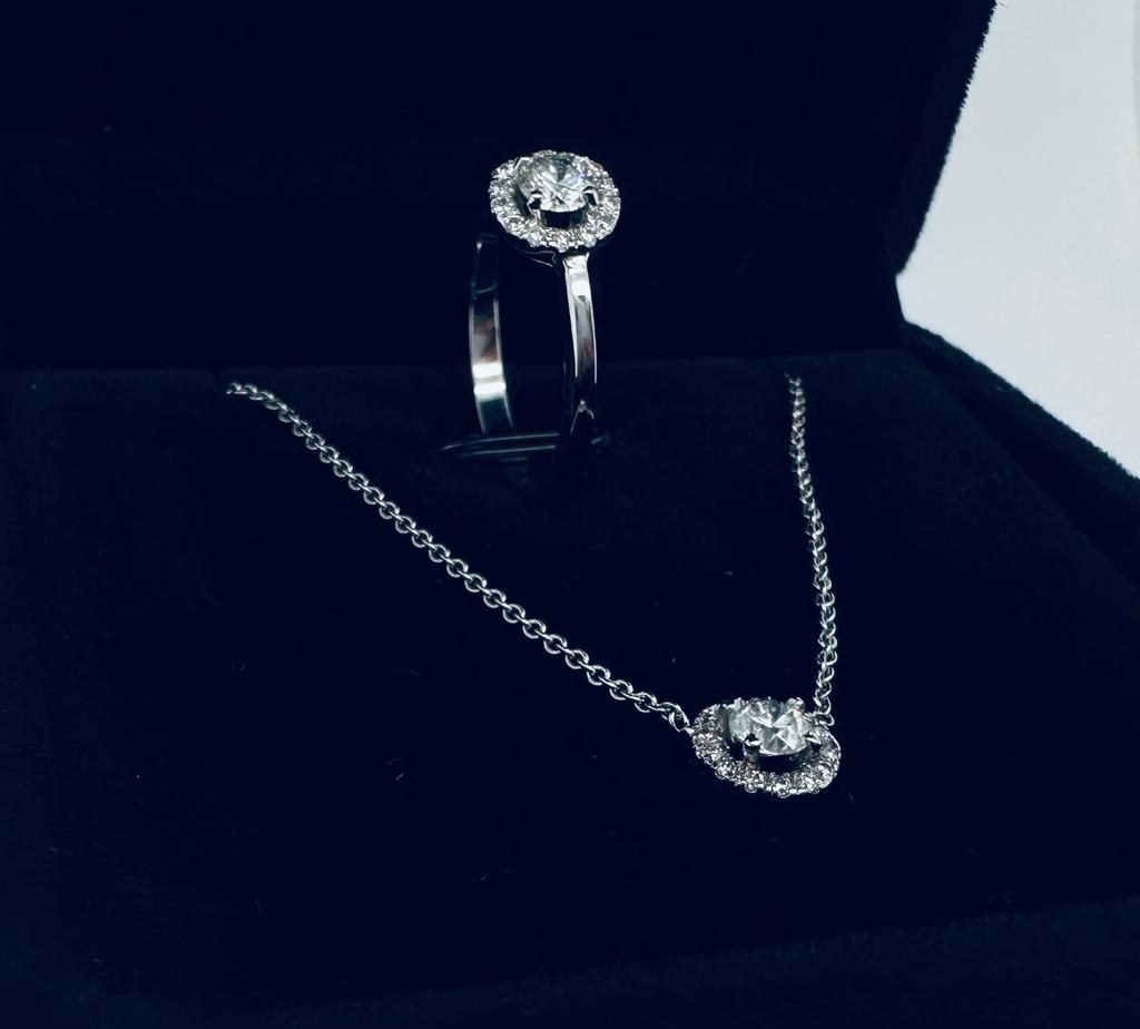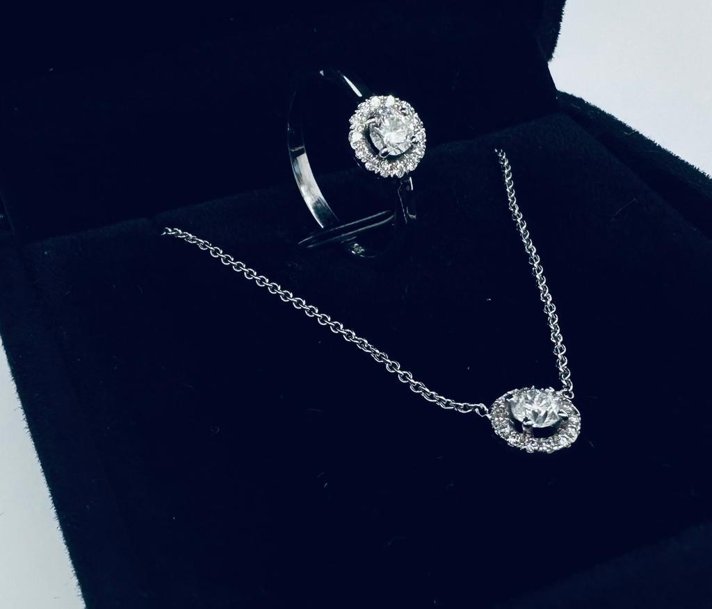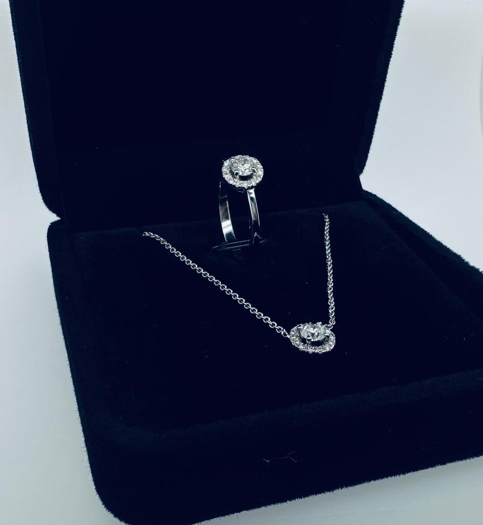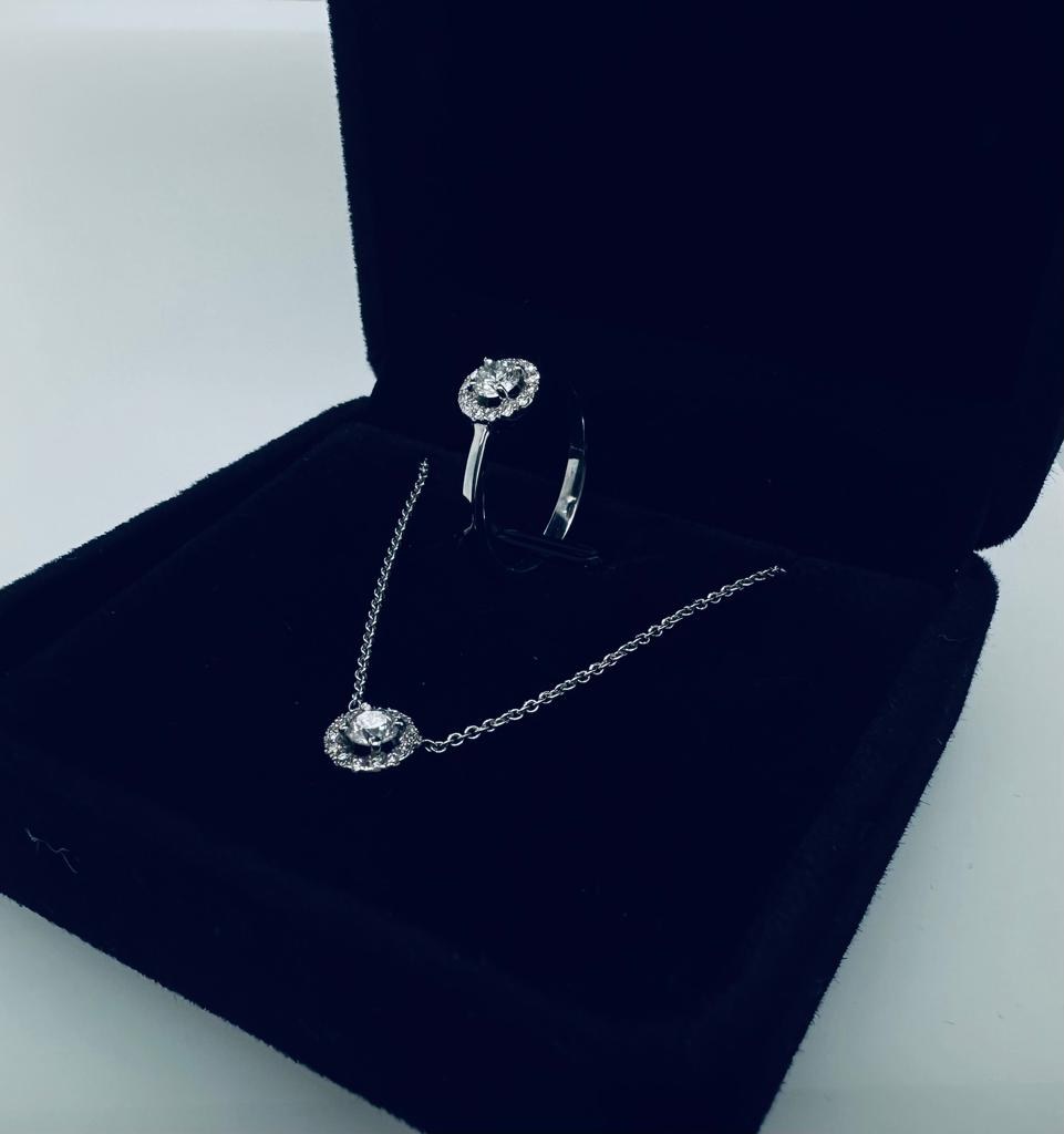 AS SET - NECKLACE+RING 14K WHITE GOLD 2.01 GR - NECKLACE: 0.25 CTS DIAMONDS CLARITY S/SI2 + 0.12 CTS COLOR F CLARITY SI1-2 SIZE-42CM / RING: 14K WHITE GOLD 2.04G WITH 0.23 CTS DIAMOND COLOR G CLARITY VS2 + 0.12 CTS BIRLLIANT COLOR F CLARITY SI1 SIZE-7